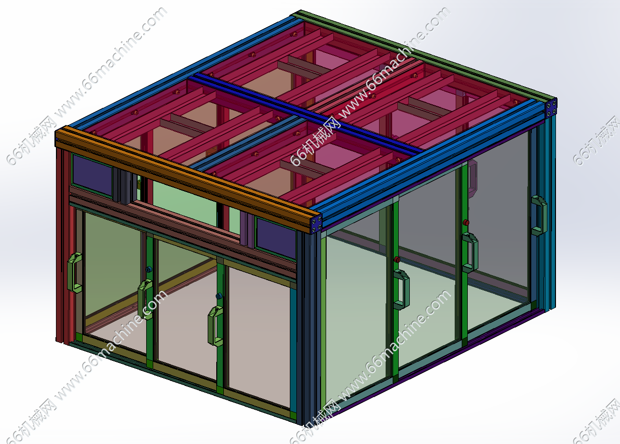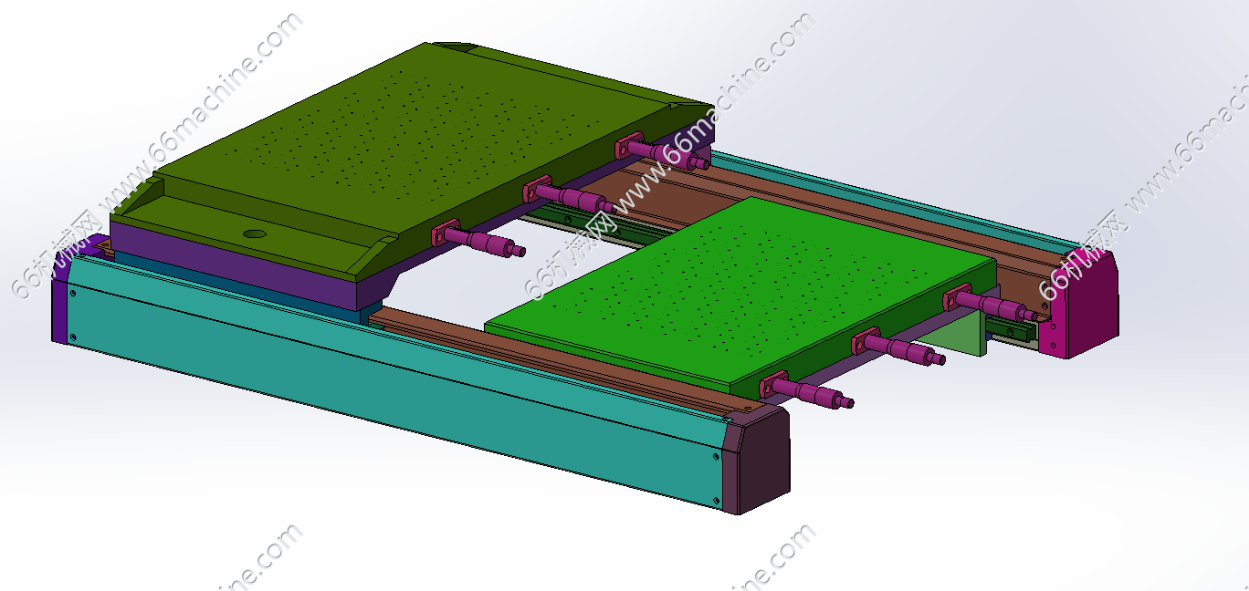 本模型为交互式网版印刷机(丝印机),主要由下机架、机罩、网版固定架、十字二轴模组、刮刀模组(含刮刀及回墨刀)、交互式双丝印台等组成,交互式双丝印台可提高印刷效率。本设备适用于PCB 、钣金件等质地较硬产品的油墨印刷作业。
