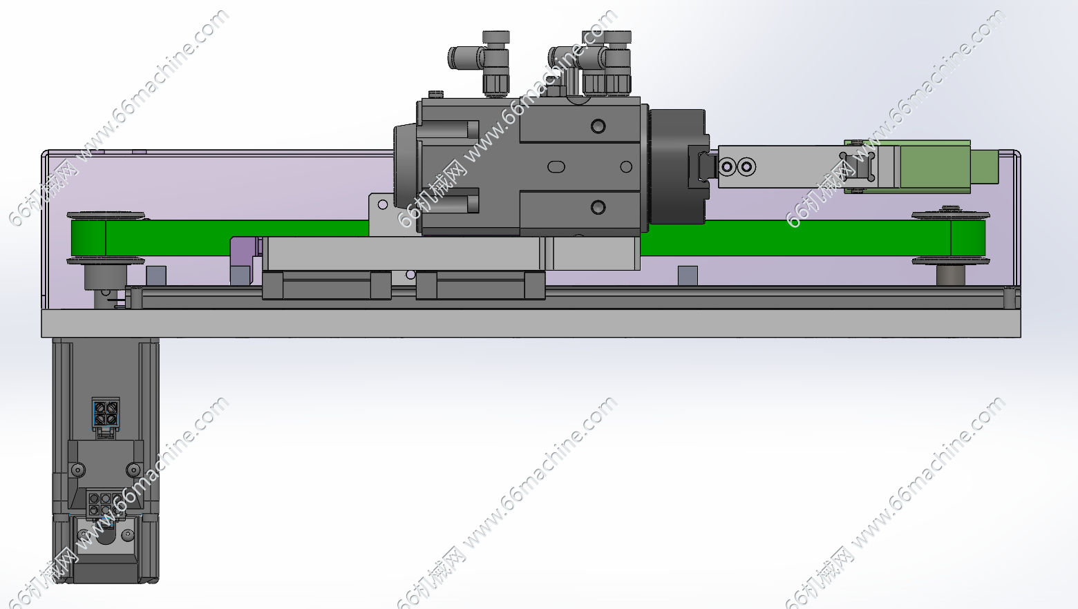 这是一种利用同步带传动系统驱动专用拨指或拨块,对U盘(或类似形状的小型存储设备、电子模块) 进行定位、拨动、插拔或移载的自动化机构。其核心目的是在自动化测试、烧录、包装或装配线上,替代人工,实现对U盘的精确、高效、无损的重复性操作,如将其从料仓拨入测试插座,或在不同工位间转移。