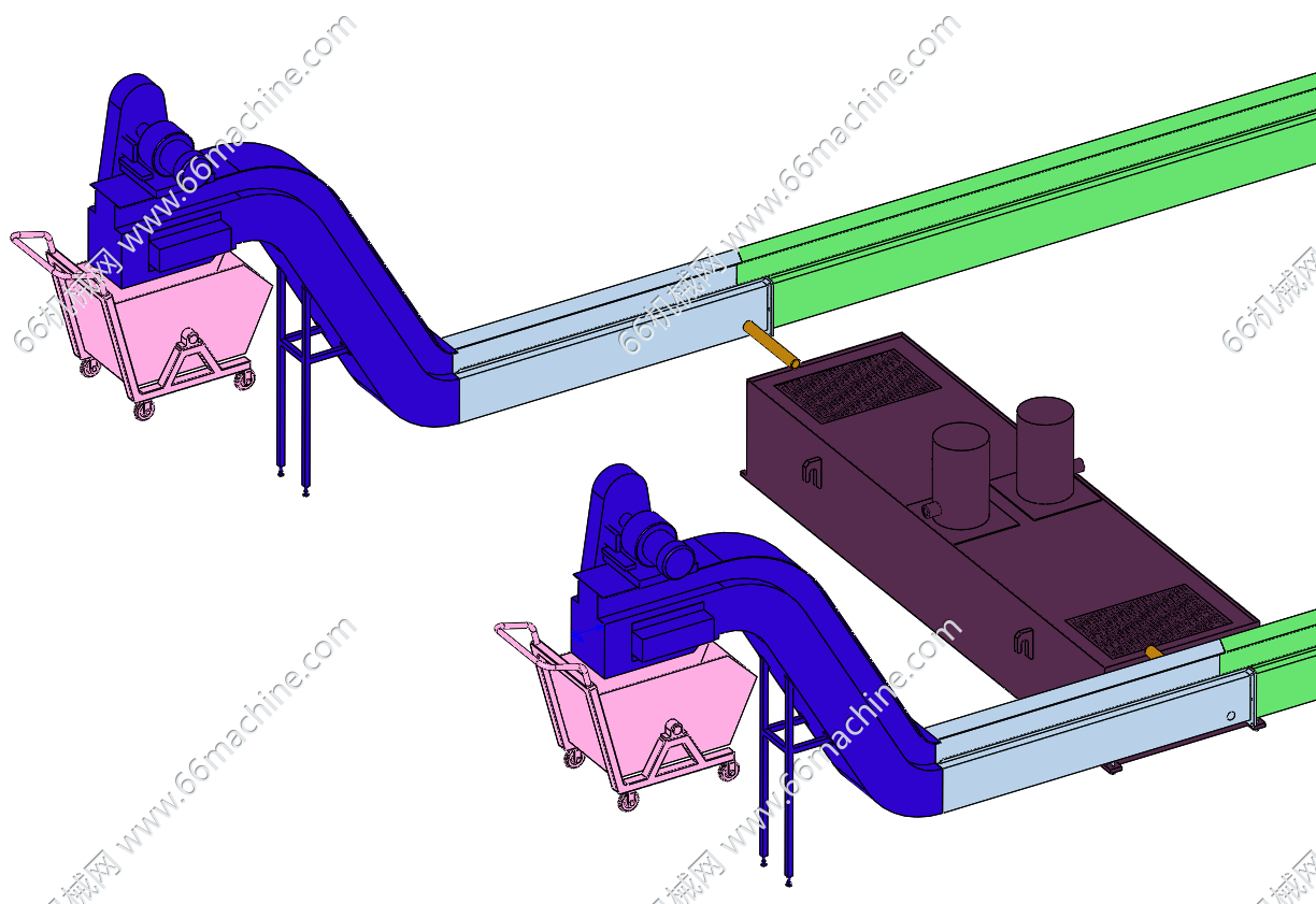 本模型为龙门机床使用链式排屑器,可以用作埋地式龙门,带水箱,链式排屑器,带排屑小车。两个排屑器可以通过水箱连接在一起。模型可用于制作设备排屑方案。
