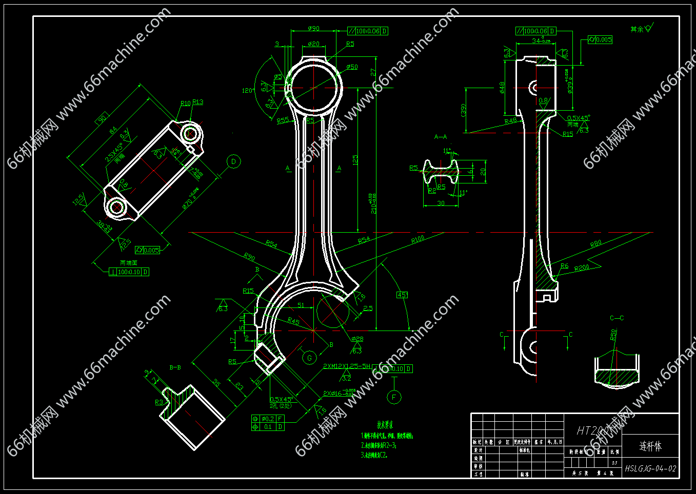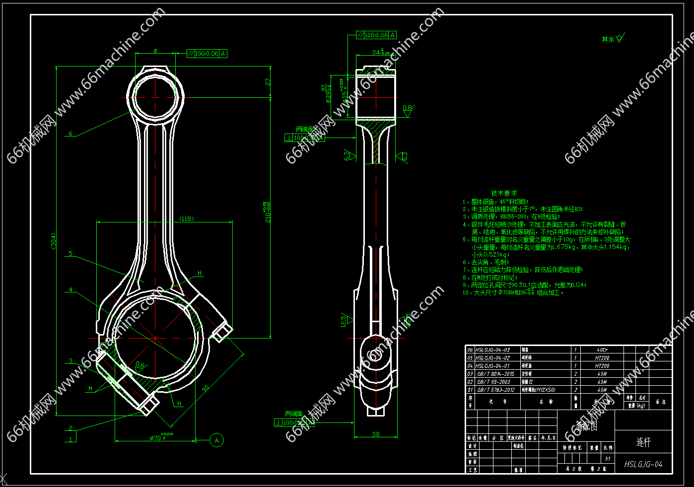 本图纸为复活塞式压缩机曲柄连杆机构,包括连杆、连杆盖、连杆体及活塞,气缸的内表面与活塞工作端面所形成的空间是实现气体压缩的工作腔,欢迎参考!