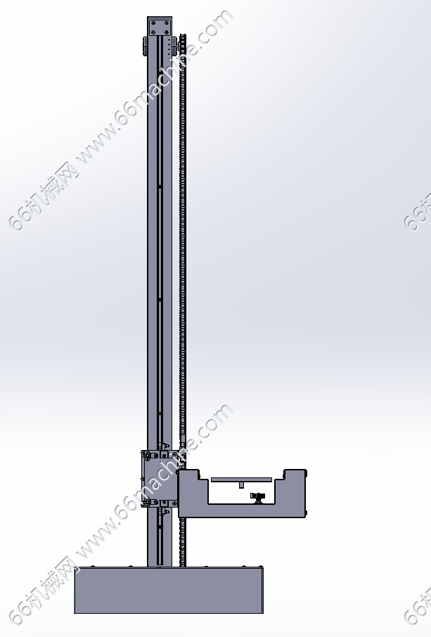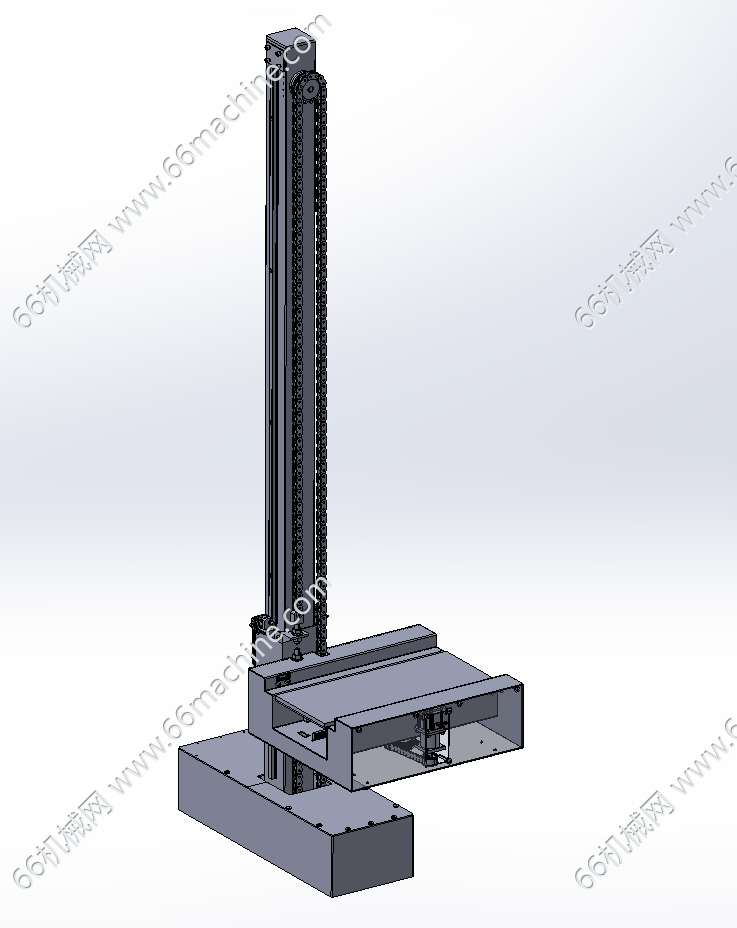 本模型为单立柱巷道式堆垛机,是自动化立体仓库的重要组成部分,自动化立体仓库是一种用高层立体货架(托盘系统)储存物资,用电子计算机控制管理和用自动控制堆垛运输车进行存取作业的仓库,是现代物流系统的一个重要组成部分。