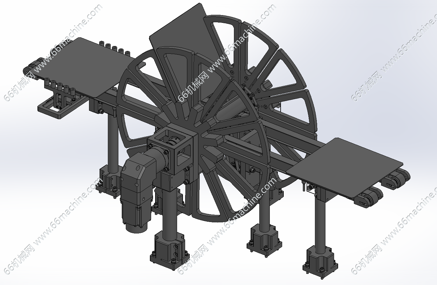 风车翻转机构是模仿风车旋转的形态,通过一个绕中心轴匀速旋转的十字形或多臂转架,在旋转过程中,利用机械结构(如齿轮、凸轮或固定轨道)控制安装在臂端的工件夹具,使工件在流转特定角度时完成精确的180°翻转。