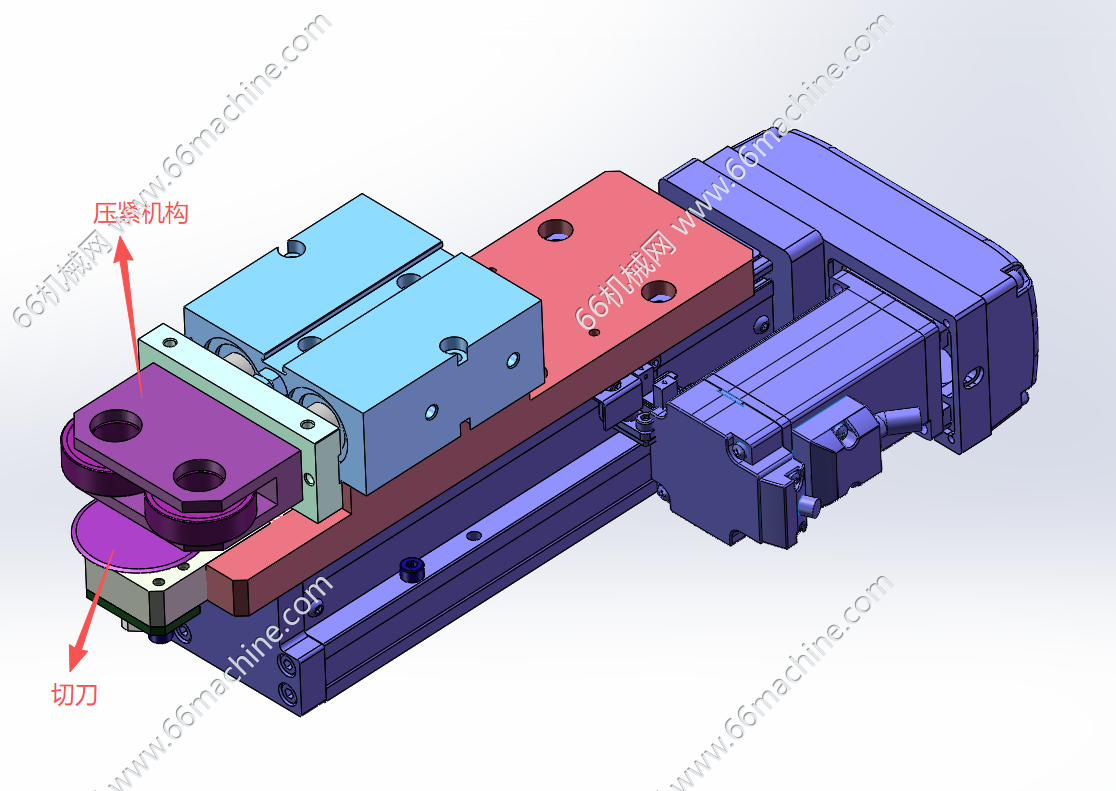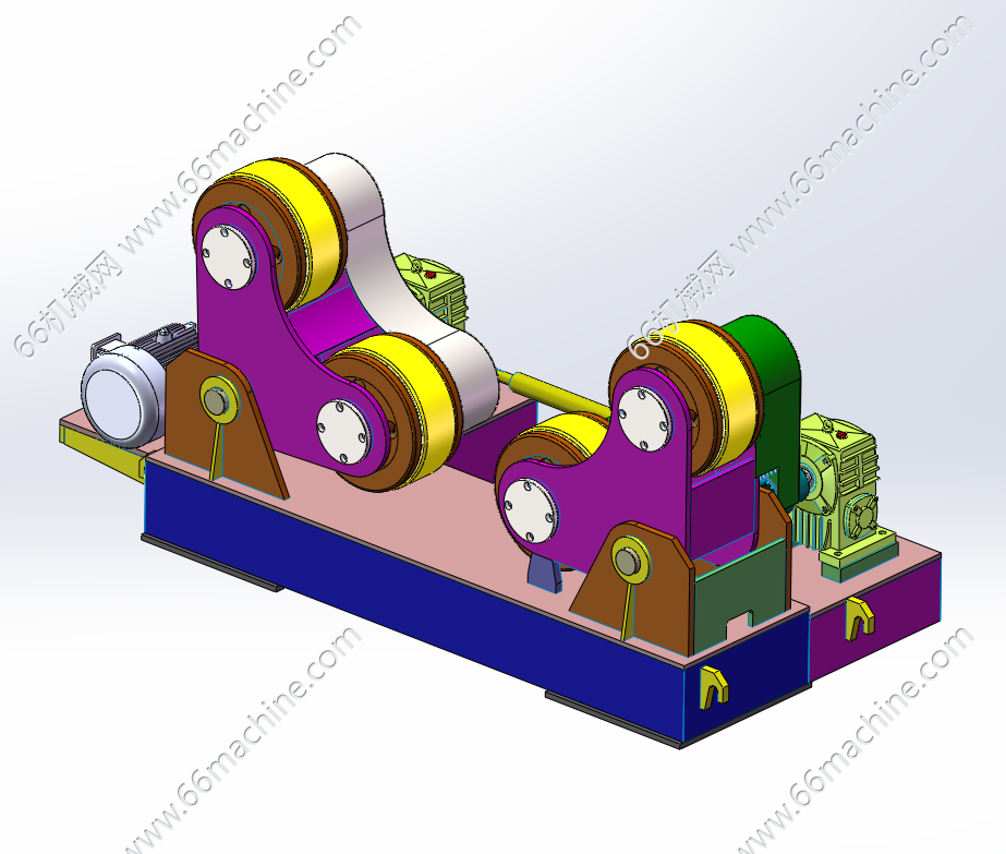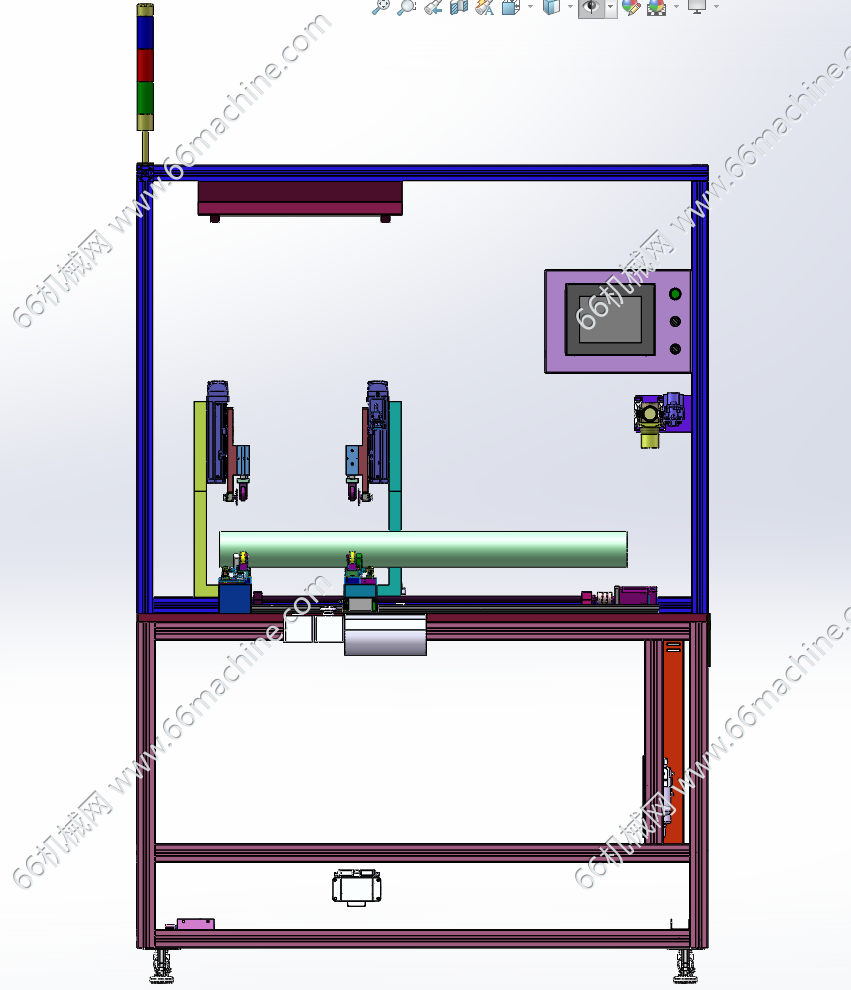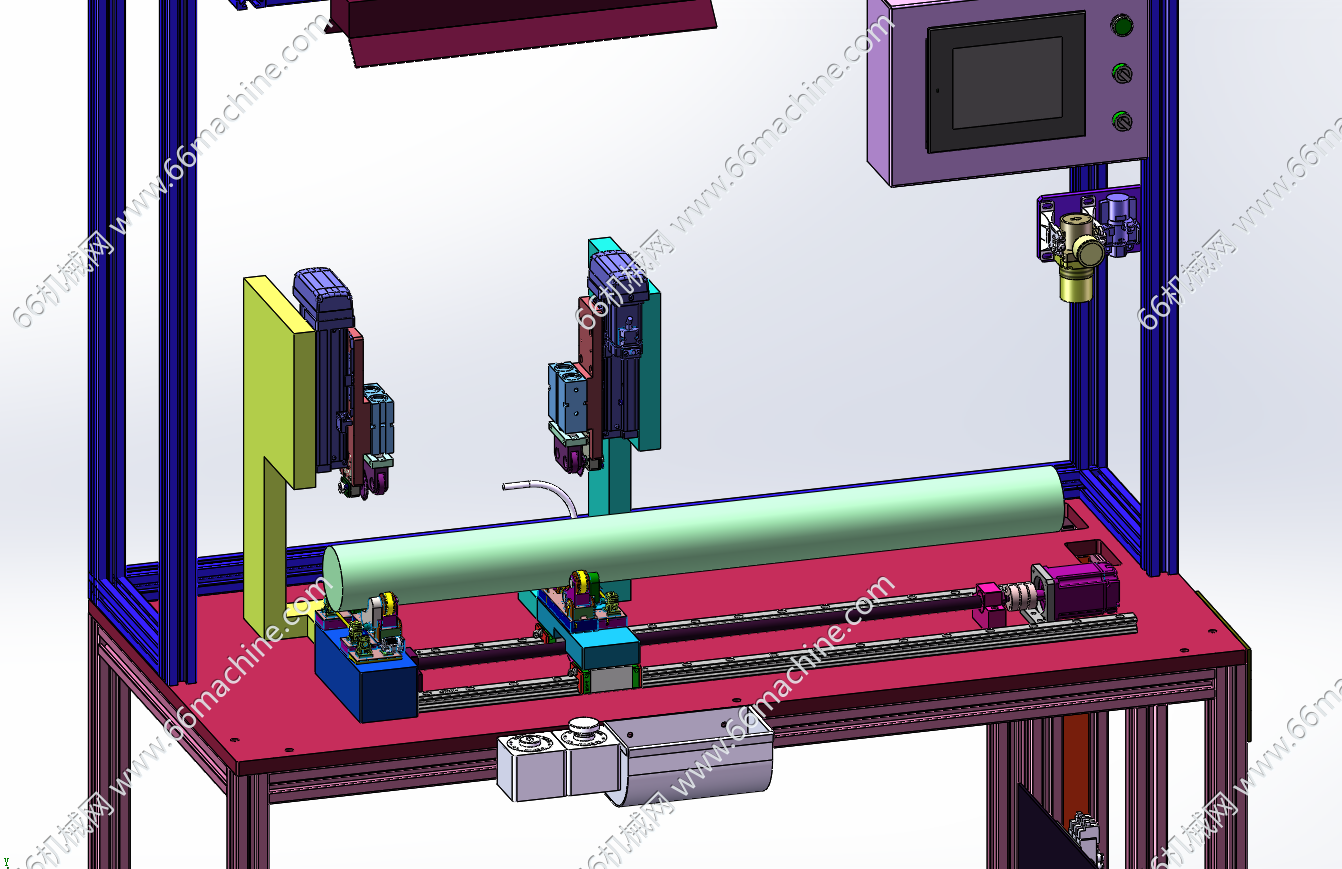 本模型为管柱件双工位旋切机(切割收口机),主要由机架、2组压紧旋切模组、滚轮架、丝杠滑台等组成,压紧旋切模组由伺服升降机构、气动压紧轮及圆盘切刀构成,管柱件采用滚轮架支撑并实现旋转,欢迎参考!