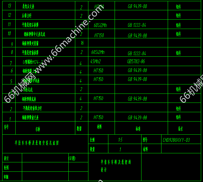 本图纸为半挂车车桥及悬架安装总成图,图纸标注清晰、完整,配有技术要求等说明,可供大家探讨学习!