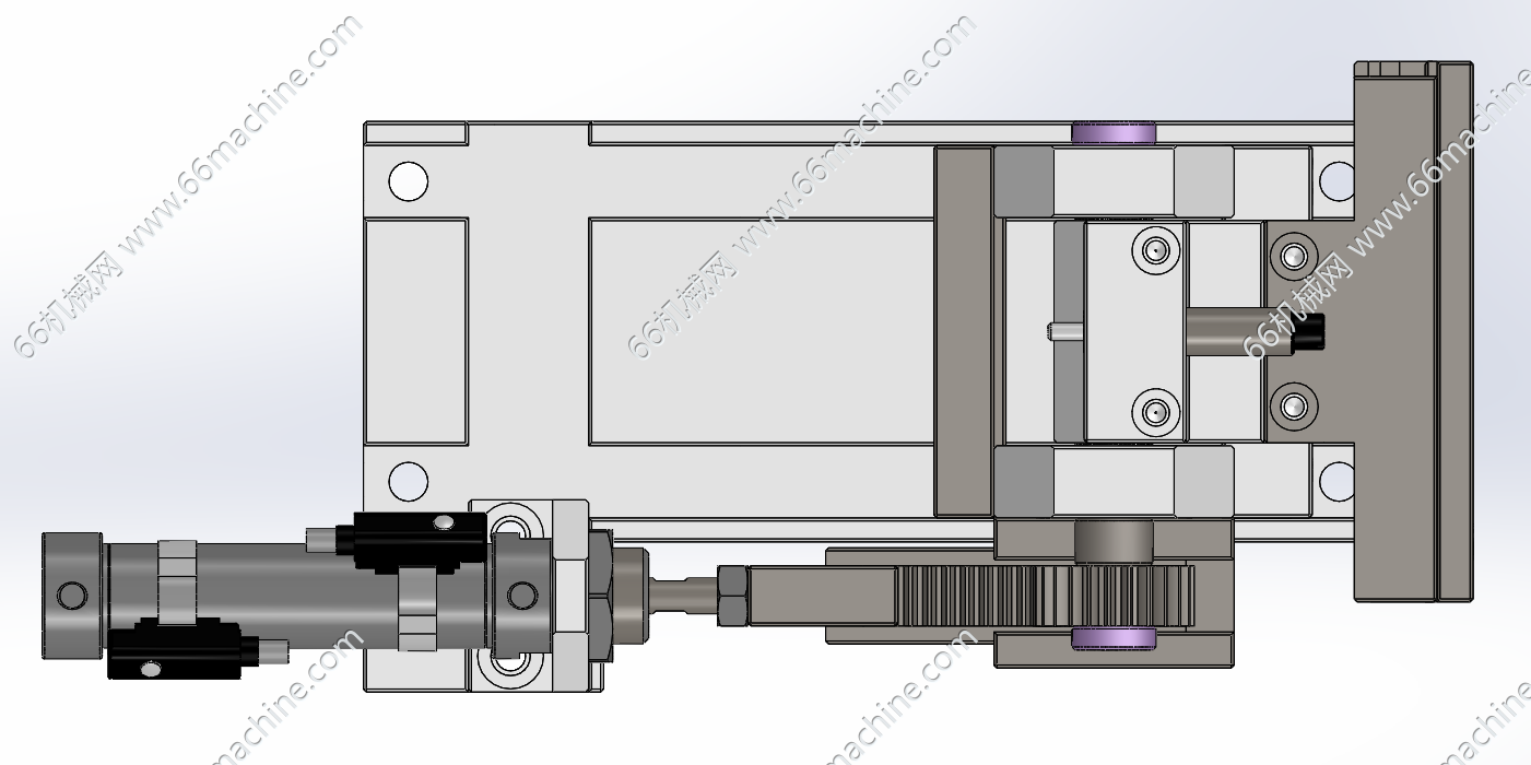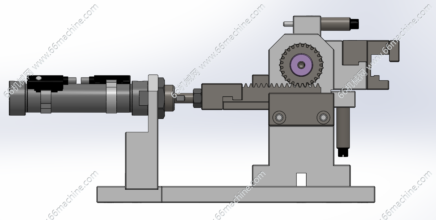 本模型为基于齿轮齿条的翻转机构,气缸驱动齿条动作进而带动齿轮旋转实现0-180°的旋转,通过巧妙设计实现直线运动转化为翻转运动,欢迎下载参考!