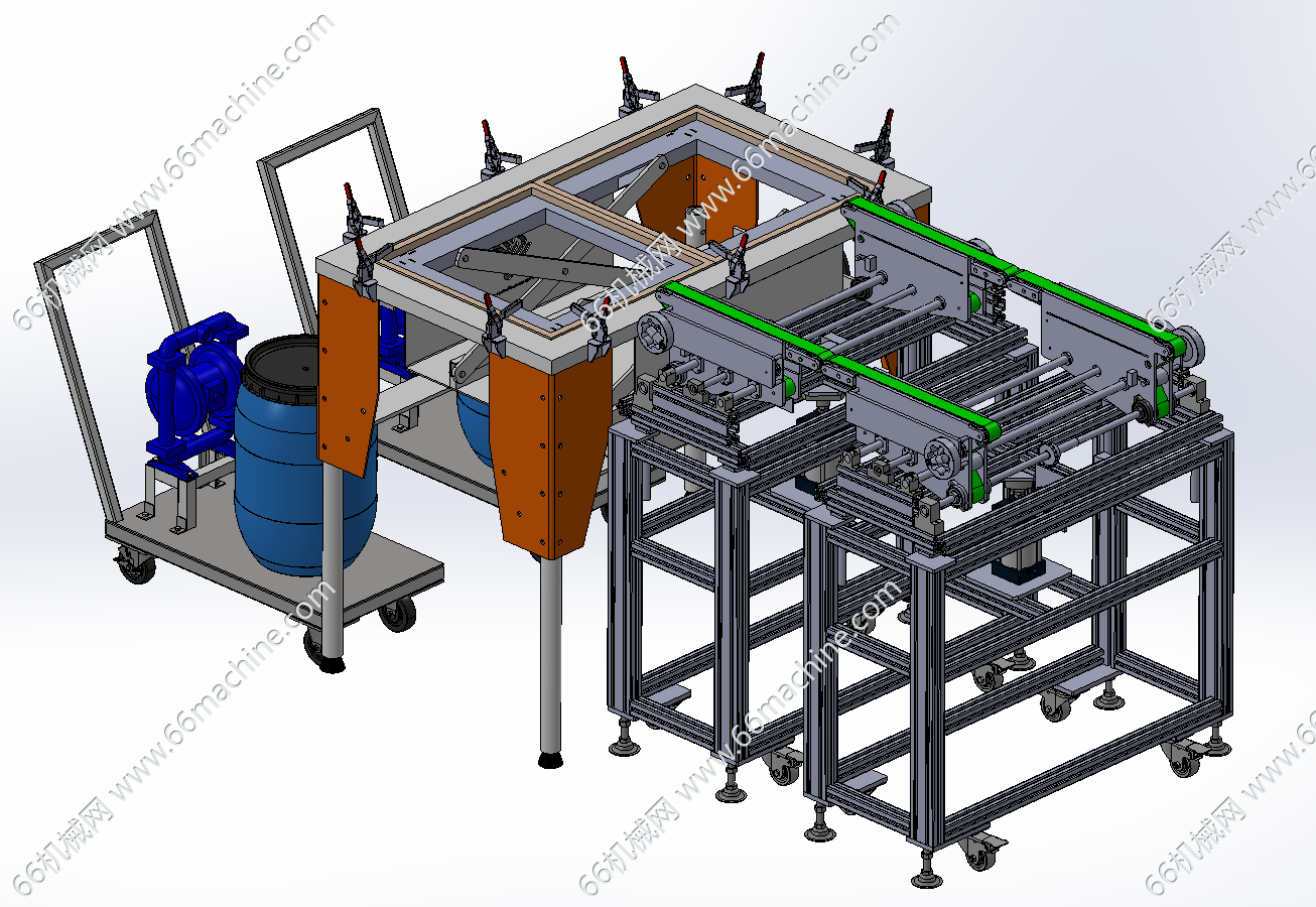 在餐厨废弃物处理场景中,该系统可实现厨余垃圾的初步分拣与输送: 传送带负责将收集来的厨余垃圾输送至处理区域,过程中可先筛除大块杂质(如骨头、塑料袋等)。 底部的收集或输送部件,能将预处理后的厨余垃圾物料转运至下一级处理设备,避免人工直接接触,提升处理效率并减少环境污染。