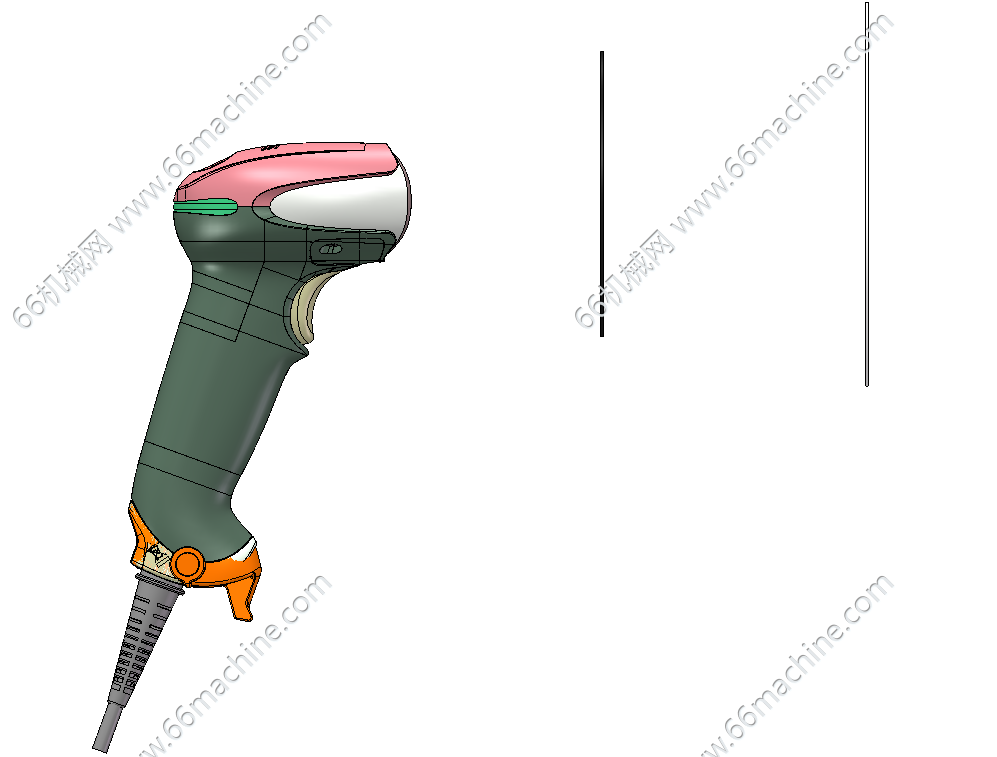 本模型为手持式扫码枪,可以通过扫码枪读取产品表面的条形码或者二维码的信息,并且连接到电脑或者工控机上面,通过网线进行数据的传输。可以直接套用,节省建模时间!