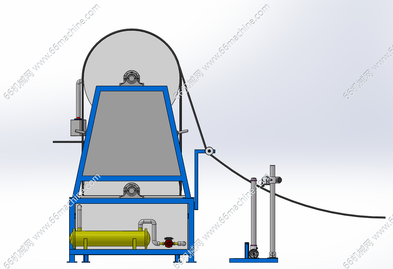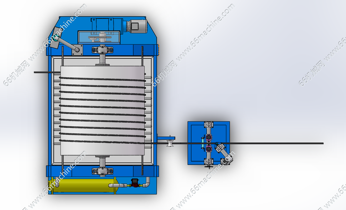 本模型为橡胶管冷却鼓,用于橡胶管的生产,主要作用是使橡胶管能够冷却下来,通过电机带动两个冷却鼓转动,冷却鼓内部在不断的进行冷气循环。本模型建模精巧,可供大家探讨学习!