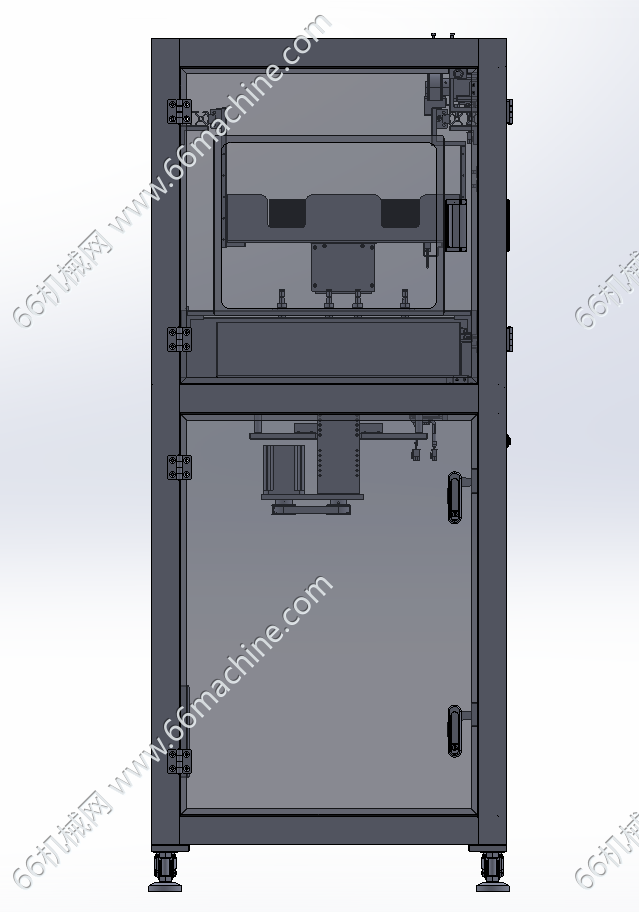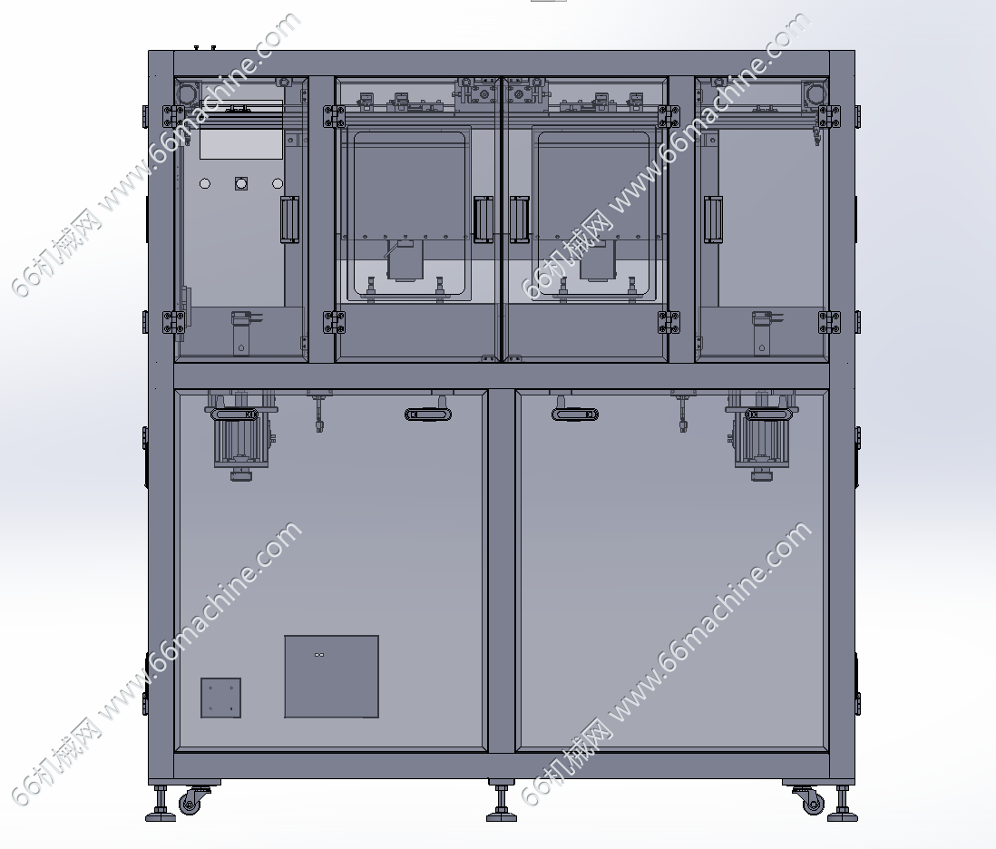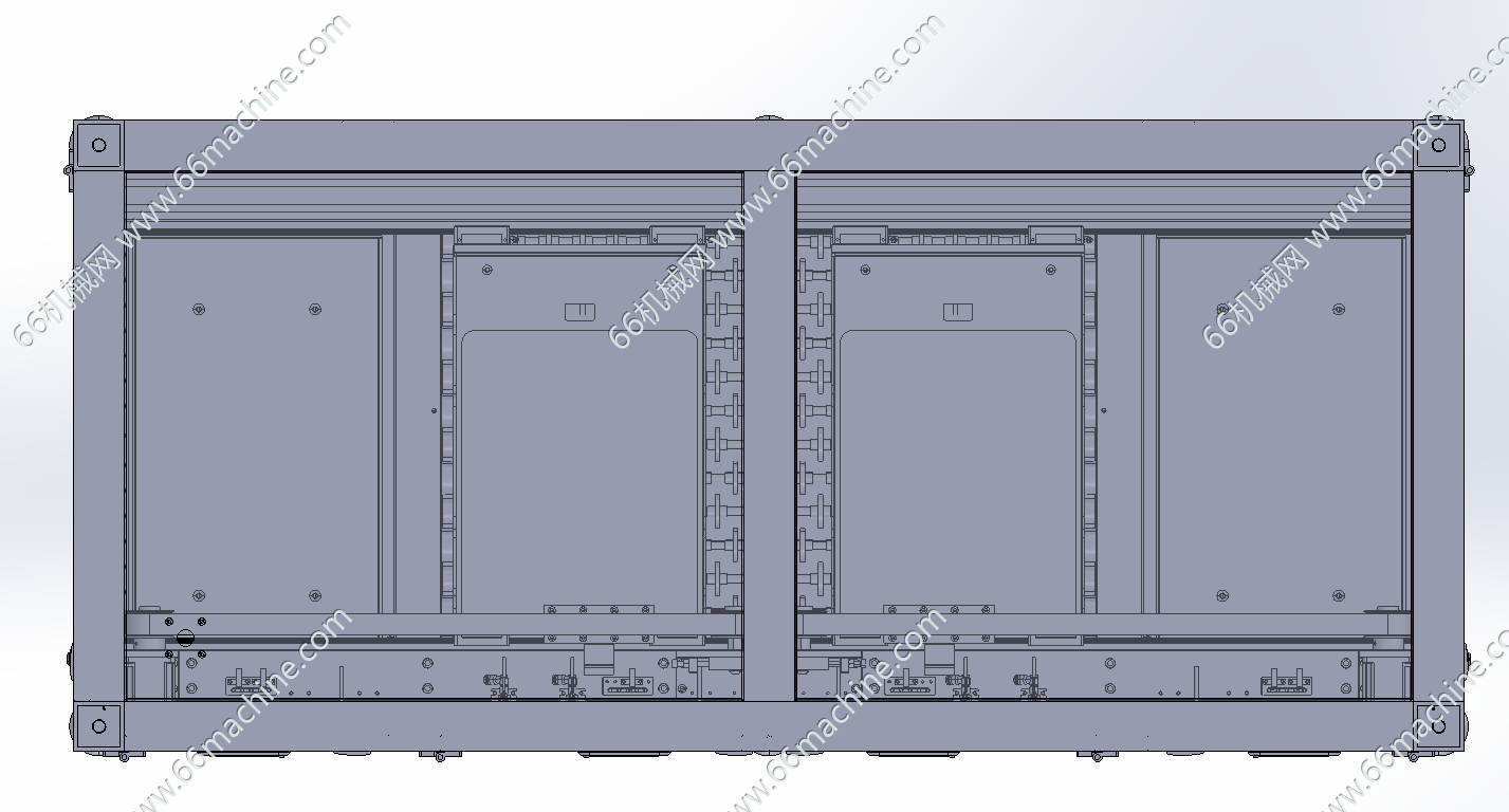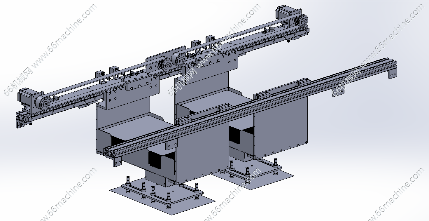 本模型为板材收料机,主要由机架、机罩、双工位吸取搬运模组、可升降料盒、滚轮输送线等组成,板材由滚轮输送线流入,吸取搬运模组吸取板料并送至料盒内,可实现自动化收料作业,欢迎参考!