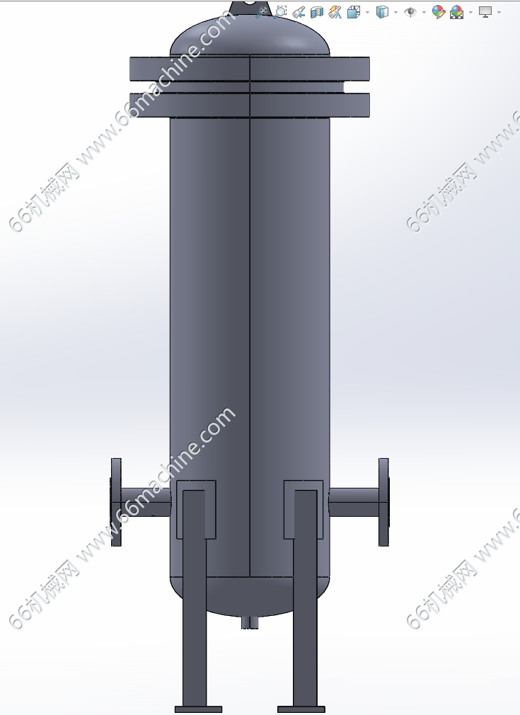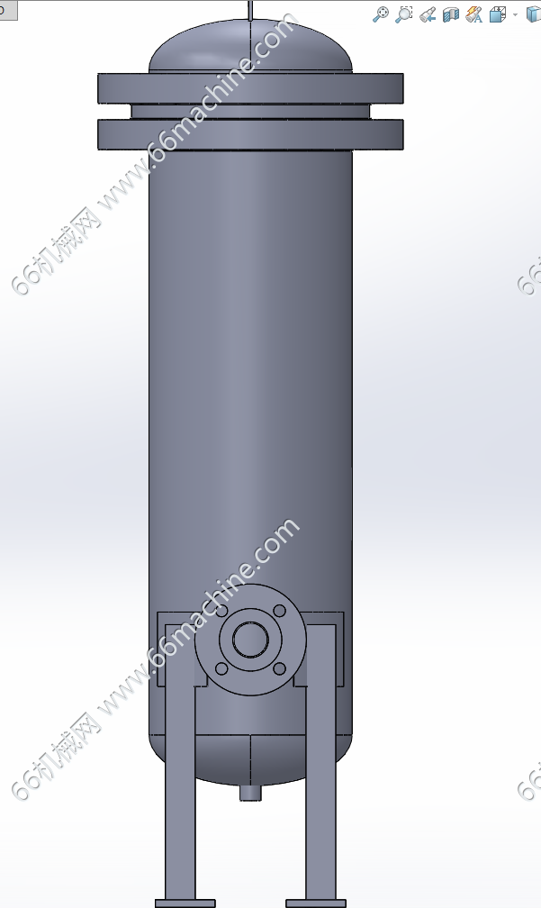 本模型为立式过滤器,最上方的椭圆形封头配合法兰结构,用于设备的密封与检修,方便打开内部更换滤芯或进行维护。侧面的两个接口通常是流体入口和出口,入口一般在下部,出口在上部,让流体自下而上通过滤芯,保证过滤效果,底部的接口是排污口,用于排放过滤下来的杂质和积液。