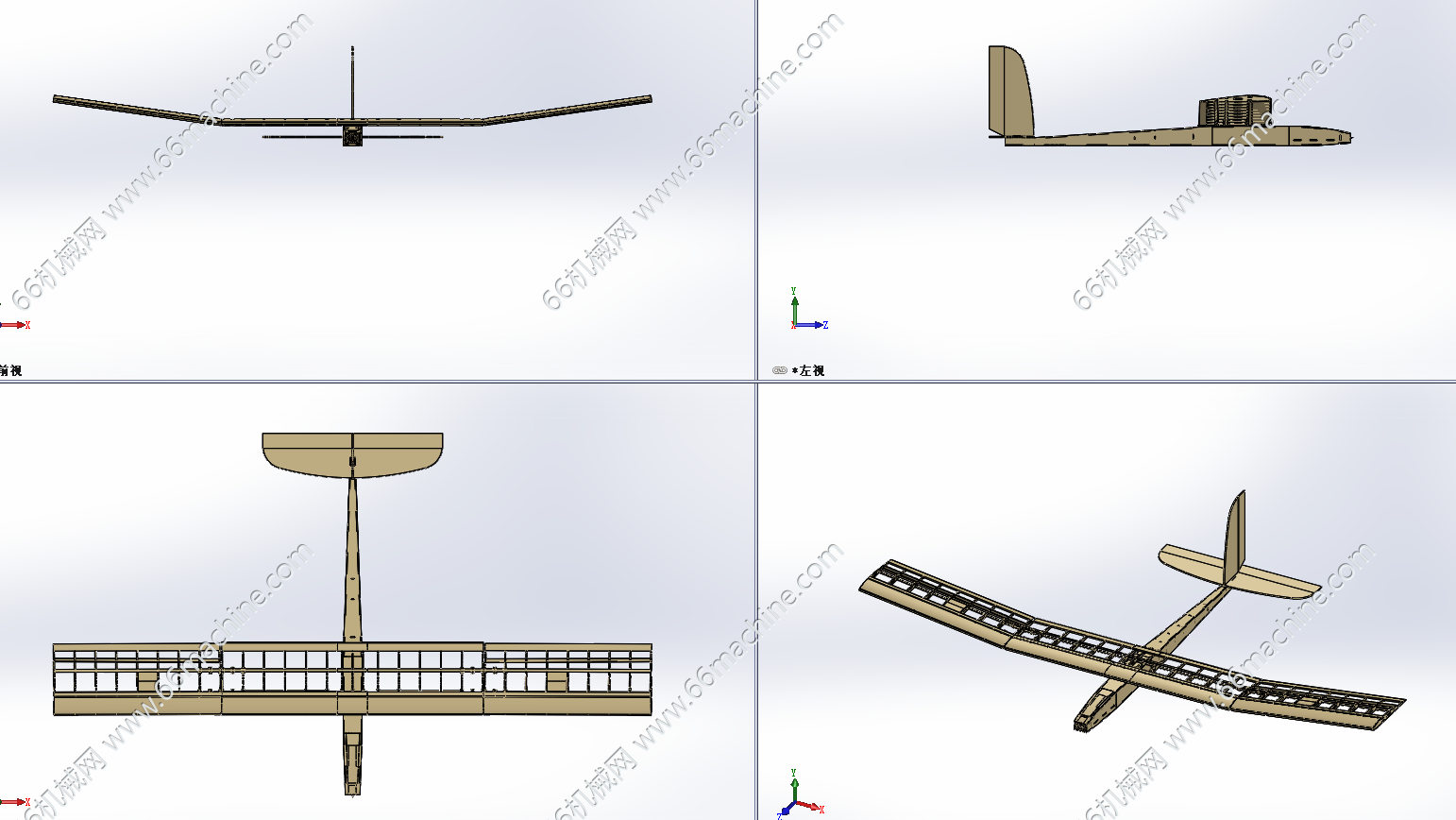 轻木滑翔机(飞机)四视图.png