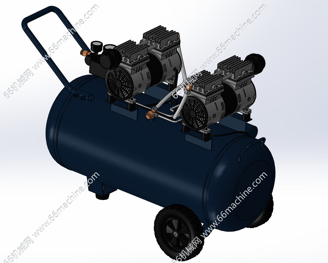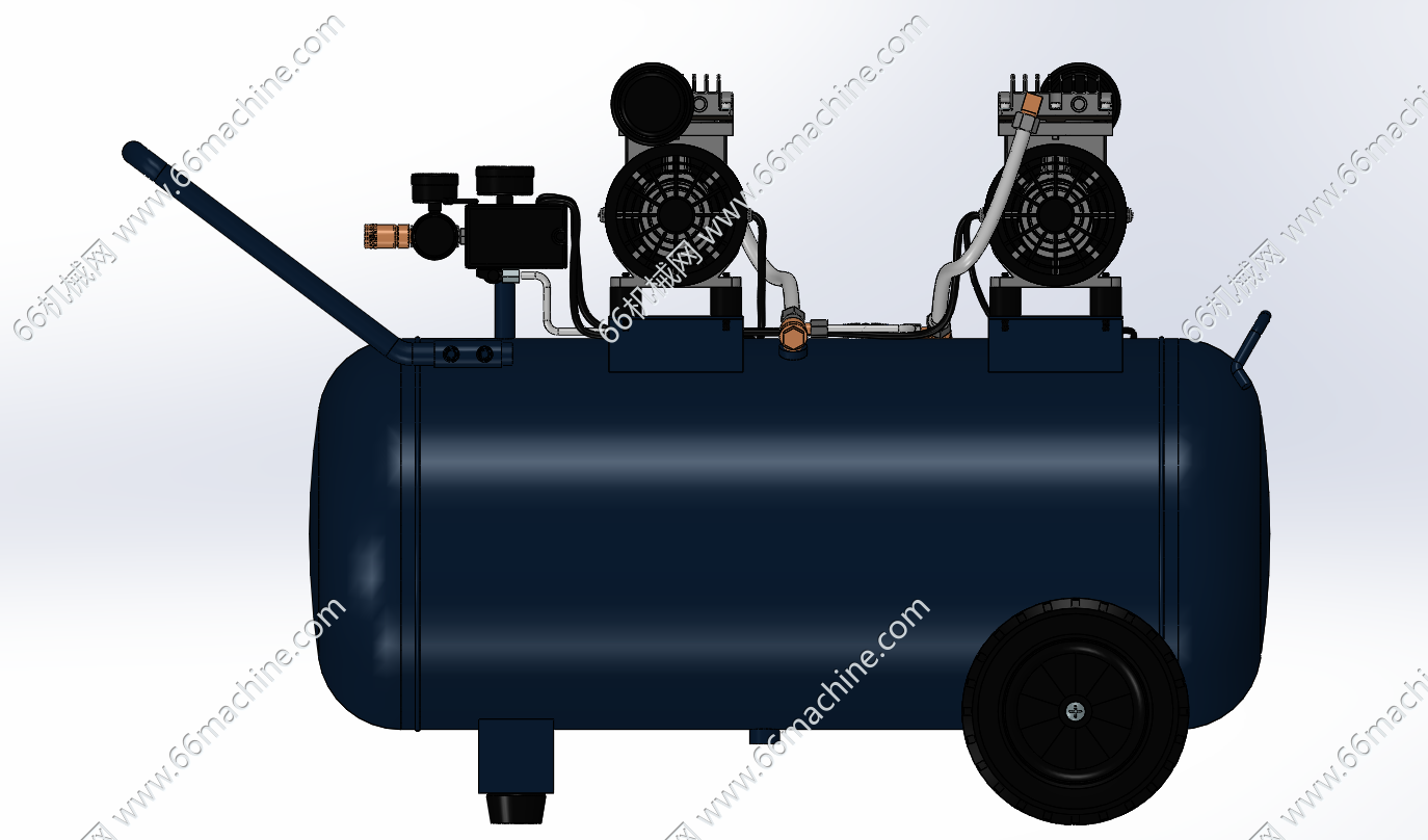 本模型为双头静音空气压缩机(空压机),是一种用于将原动机(通常是电动机或柴油机)的机械能转换成气体压力能的装置,它能够提供气源动力,是气动系统的核心设备。