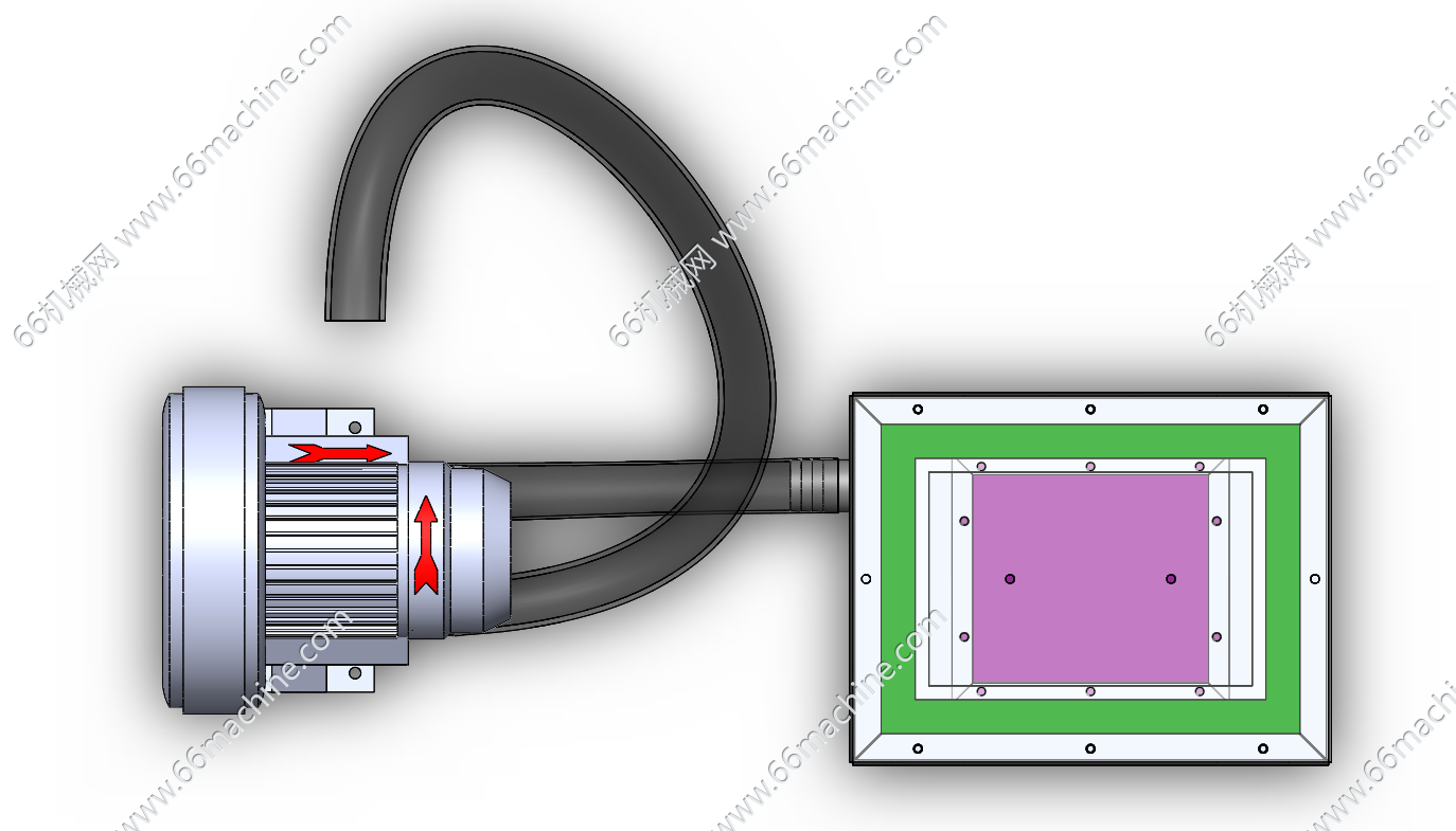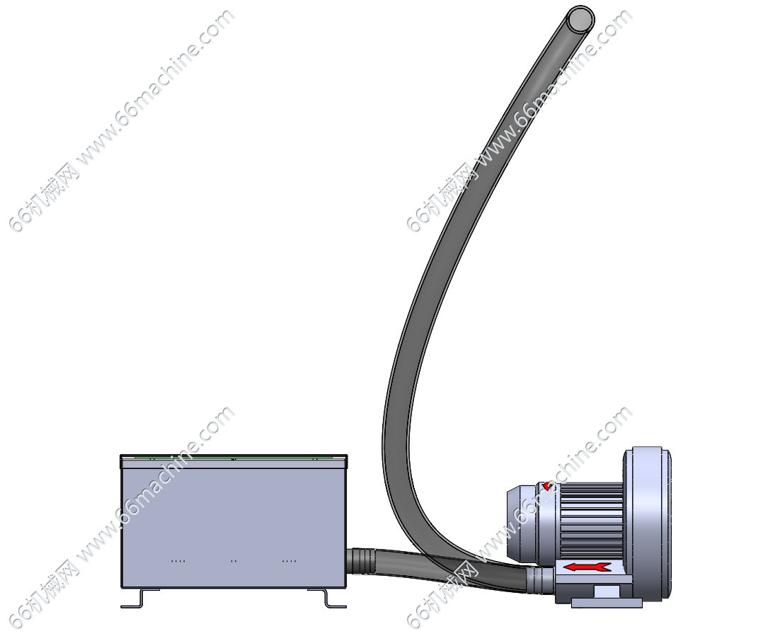 本模型为基于漩涡鼓风机的负压吸尘装置,由储尘箱、漩涡鼓风机、波纹管组成,通过风机运行形成负压,将粉尘或碎屑吸入储尘箱内完成收集,顶部带密封槽的储尘箱可通过外接透明罩形成封闭作业腔,适配小型加工工位的粉尘、碎屑清理需求。