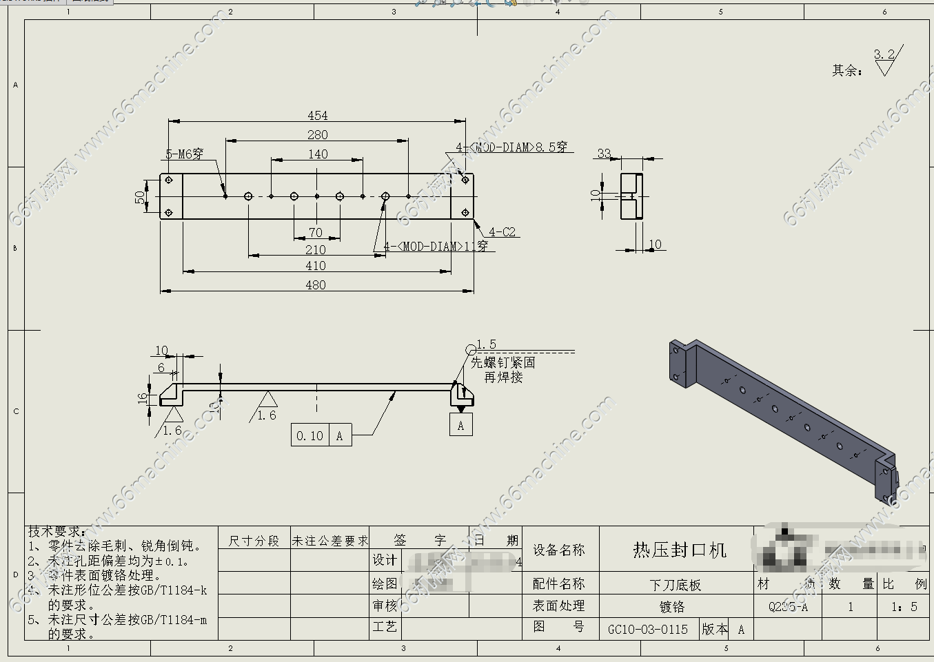 本模型为某企业胶袋封口机(热封机),适用于热密封胶袋,采用人工上下袋,气缸驱动热压刀对胶袋热熔封口,具有操作简单,制作成本低的优点,可供大家参考!