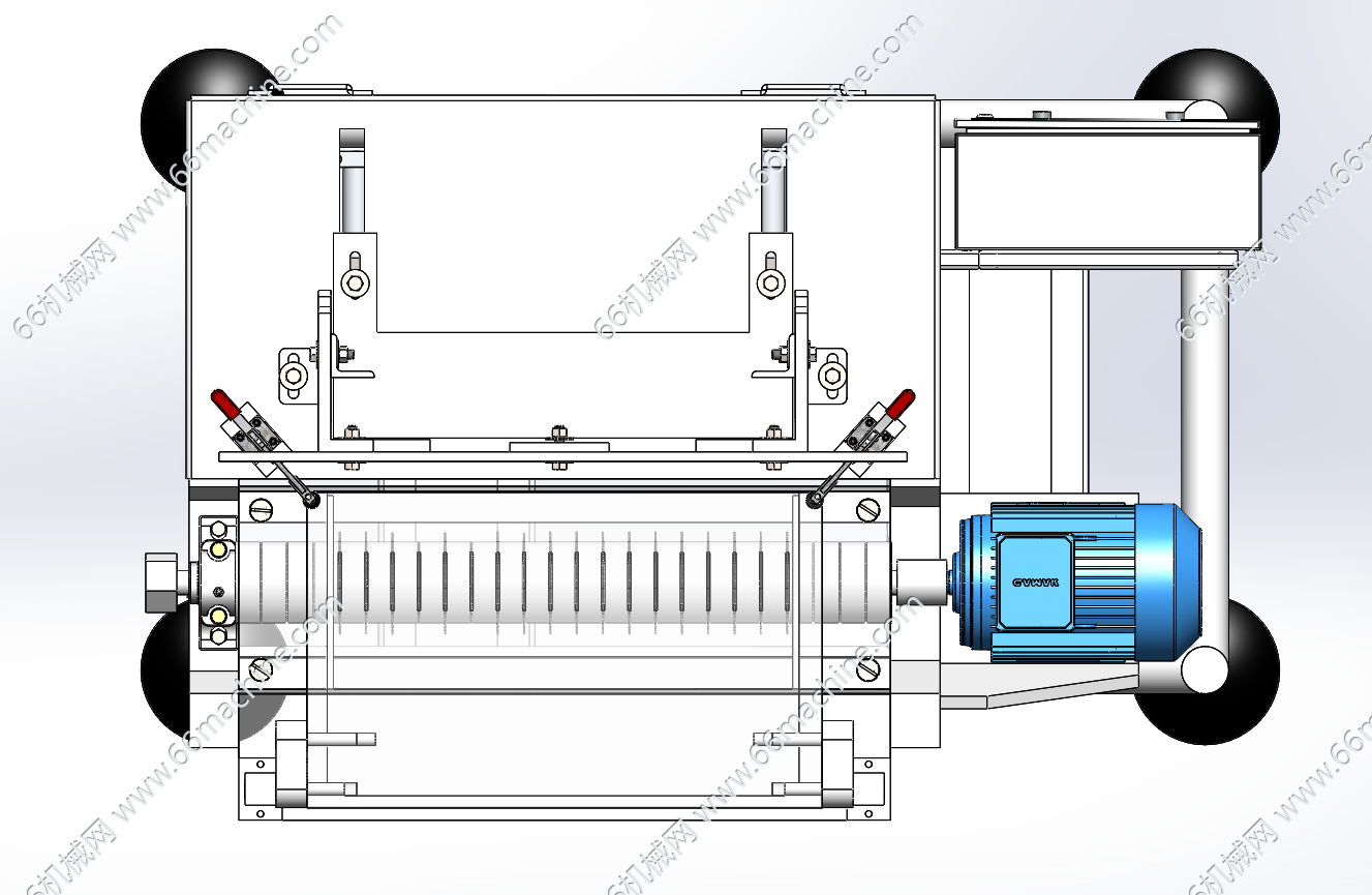 本模型为鱼类加工器(杀鱼机),将鱼放入罩内,用快换夹具进行固定,电机驱动轴旋转,轴上刀盘对鱼进行分割,高精度刀具与传感器技术实现精准操作,可供大家参考!