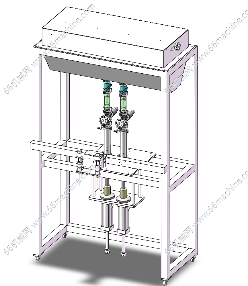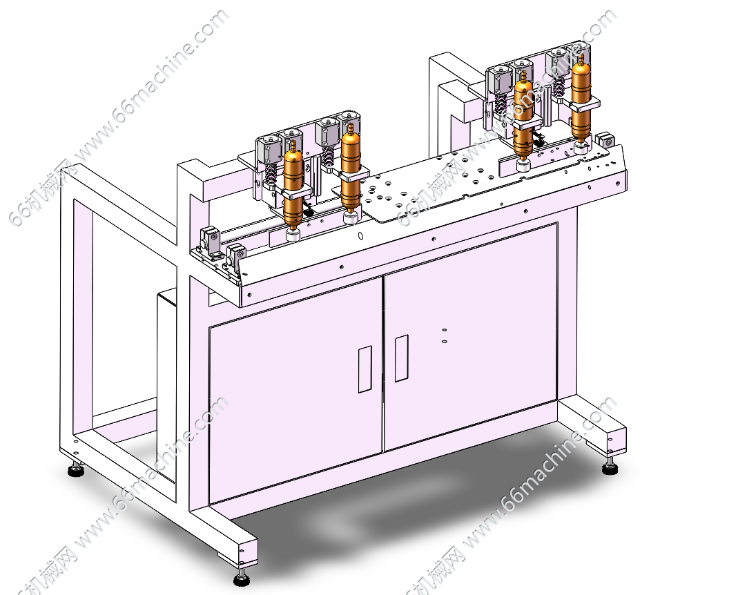 本模型为二工位半自动灌装机,主要由灌装模组及拧盖模组组成,每次可以装两个瓶子,中间工位灌装,两边工位拧瓶盖。广泛用于饮品、医药等行业,欢迎参考!