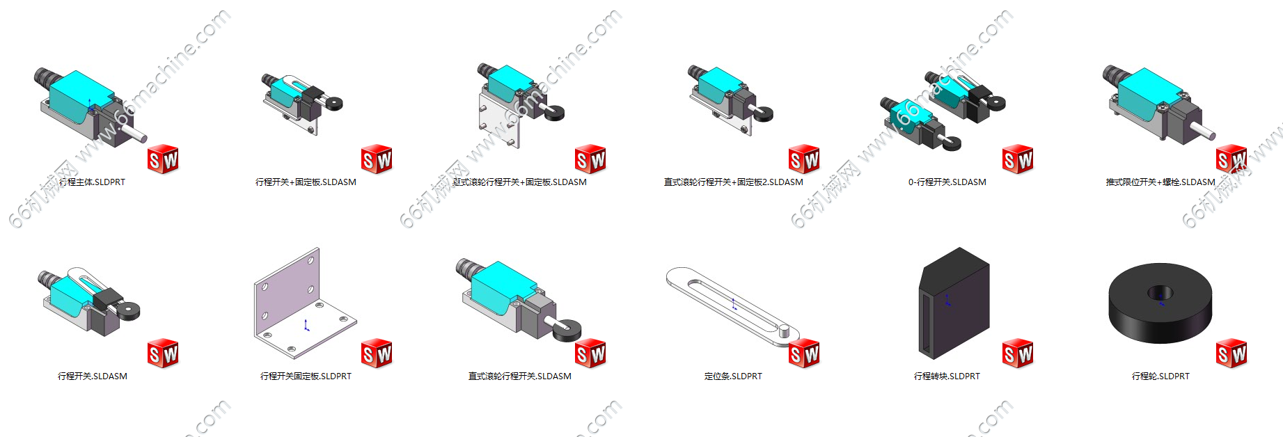 本模型是两款行程开关,行程开关又称限位开关,是一种用于检测机械运动位置并控制电路通断的自动化控制元件。行程开关广泛应用于工业机械、自动化设备、电梯、输送线等场景,用于限制运动部件的行程、定位或安全保护,具有结构紧凑、动作可靠、耐磨损等特点。