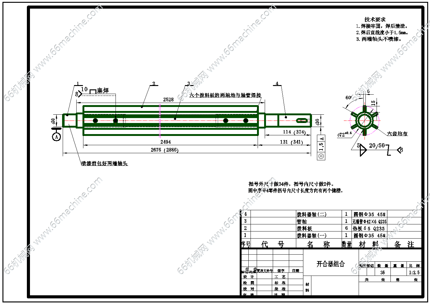 本图纸为折板开合器,通过链轮链条来实现开口的闭合,控制开口的大小,原理类似百叶窗,适用于稻谷、玉米、花生的放料量控制,也适用于工业颗粒物料的放料作业,可供大家参考!