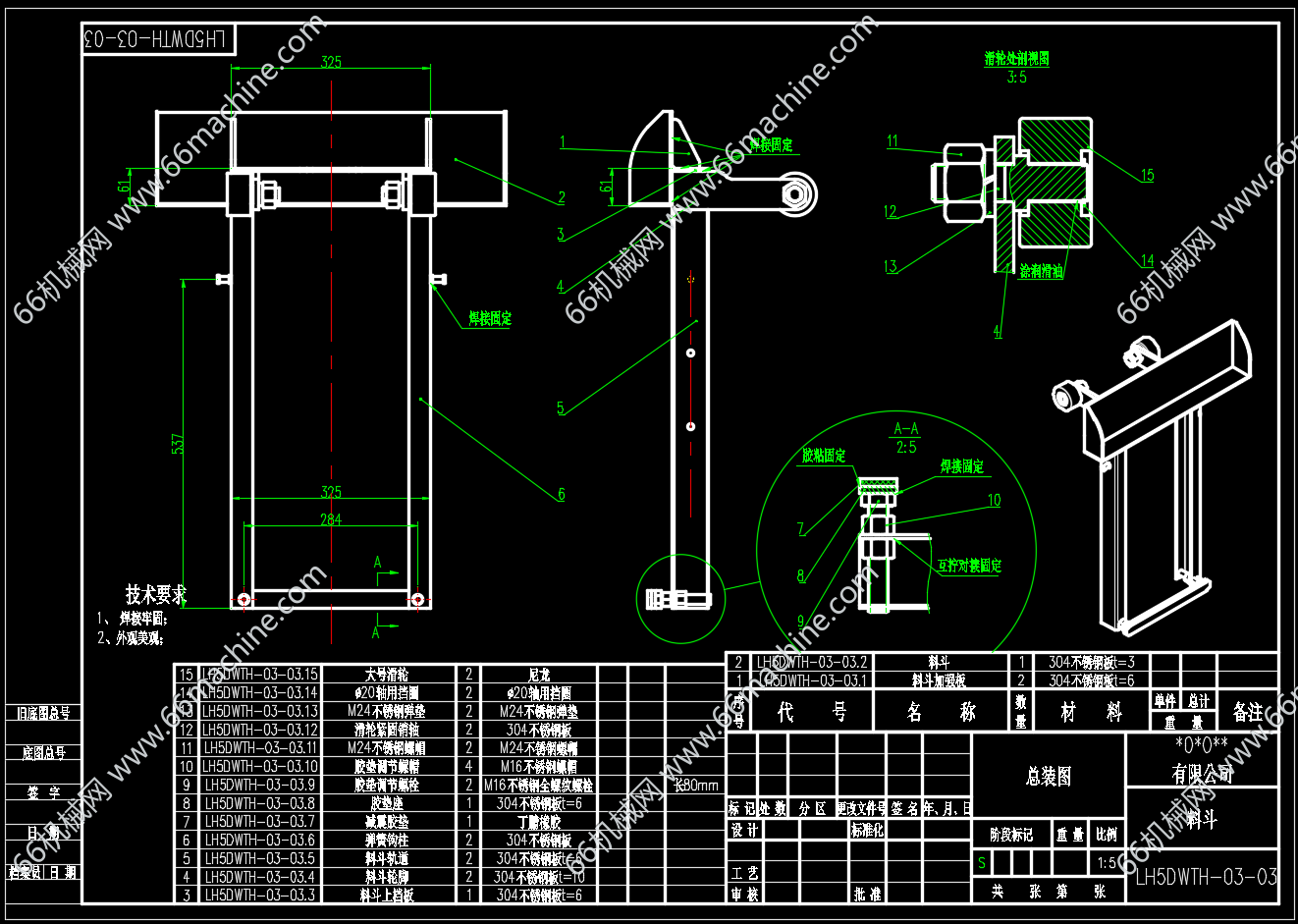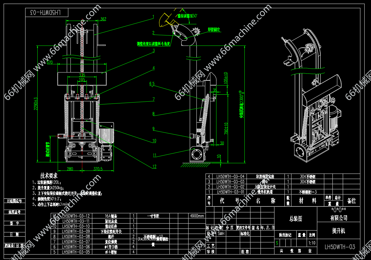 某企业垃圾桶提升大角度翻转机3D+CAD