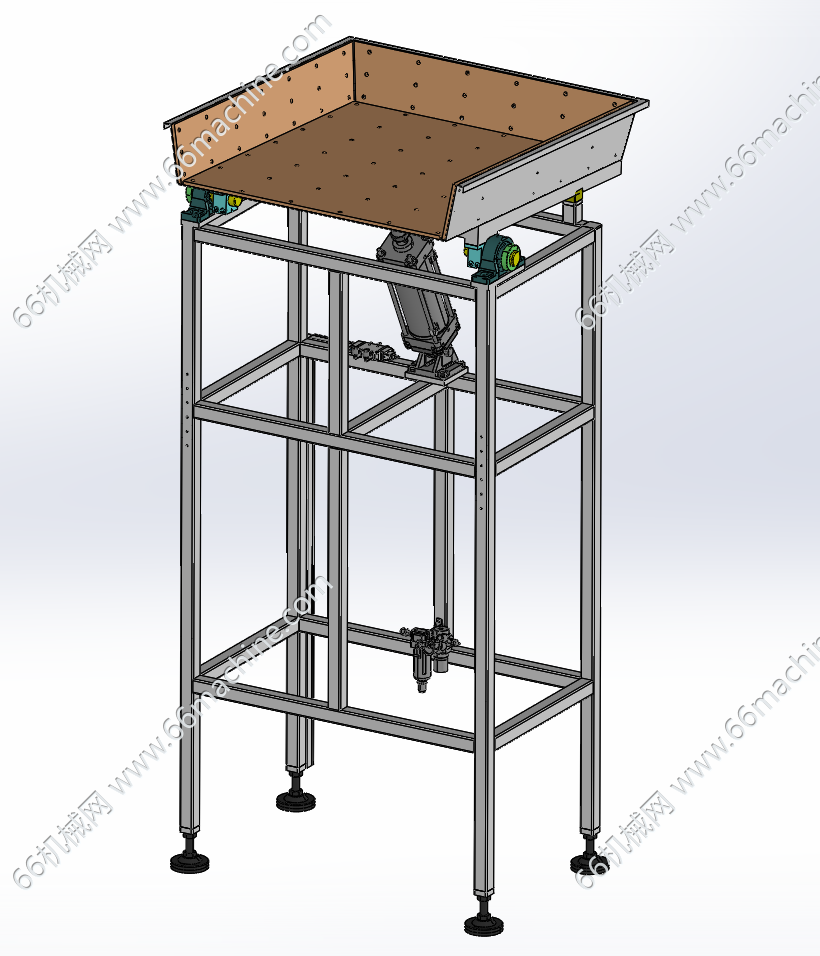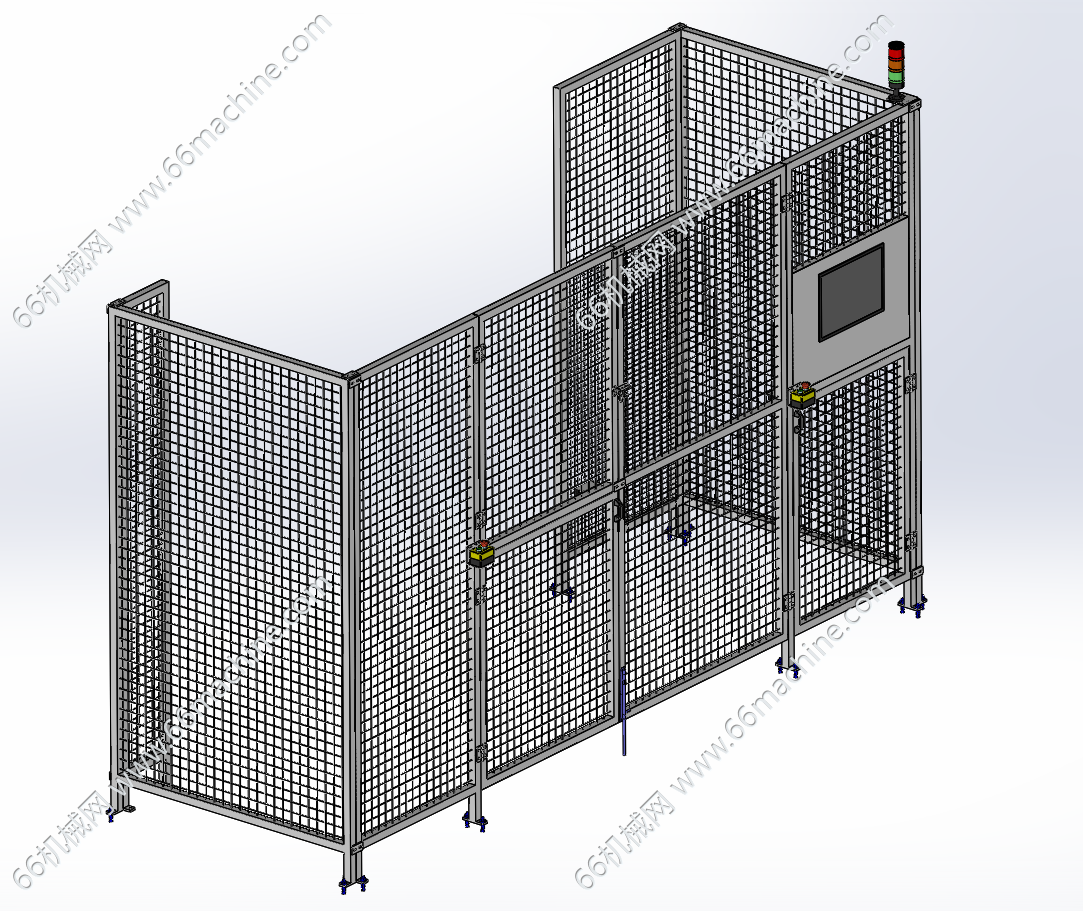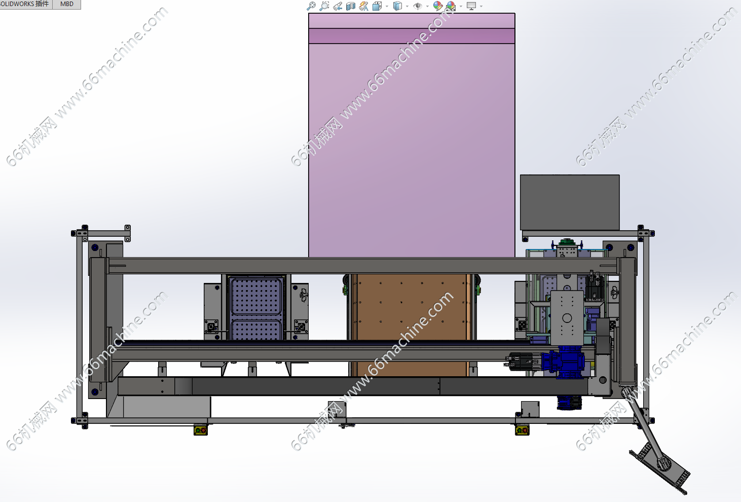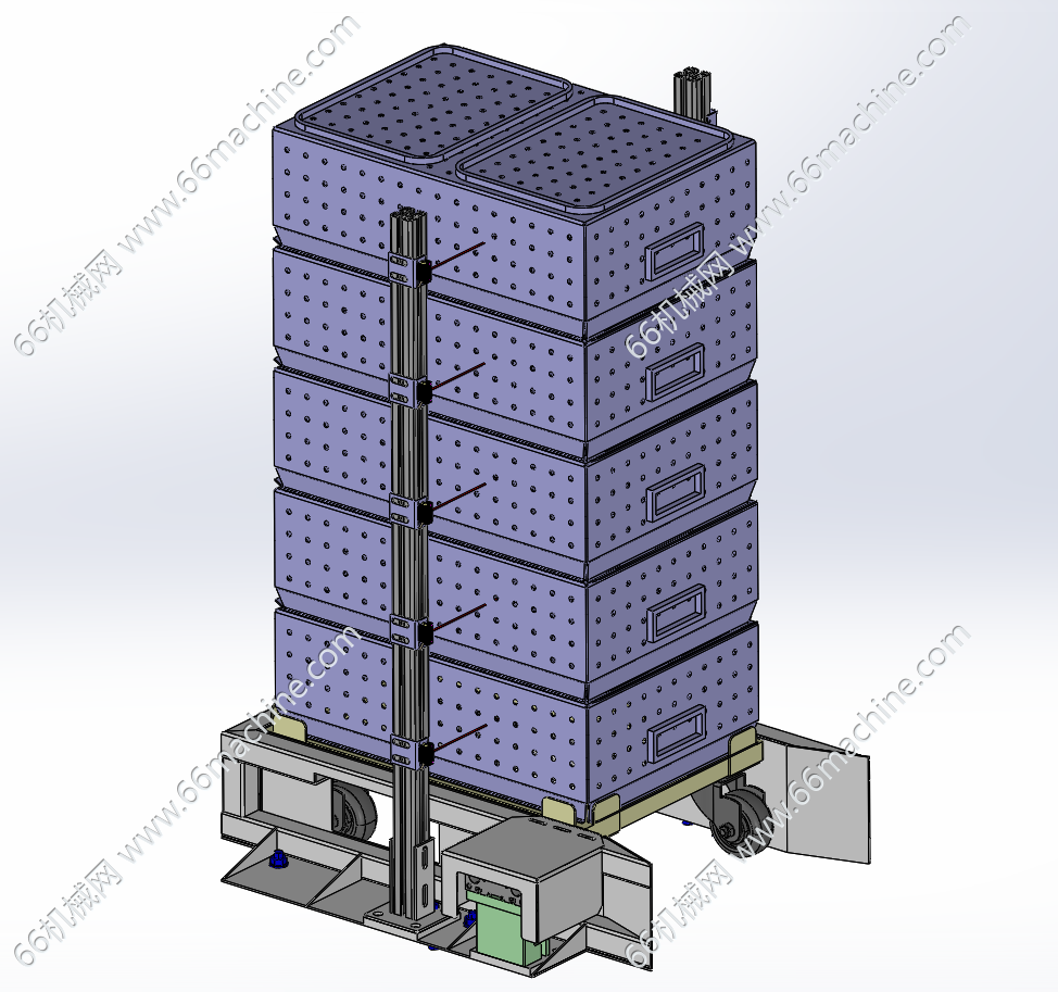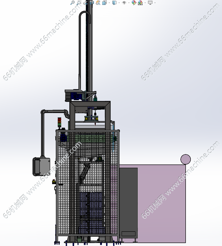 本模型为龙门翻转倒料机,主要由龙门移送翻转机、气动翻转机构、堆叠料框及小车暂停位及安全围栏组成,龙门移送翻转机抓取堆叠的料框并将内部产品倒入气动翻转机构的托盘上,然后再倒入存储框内!