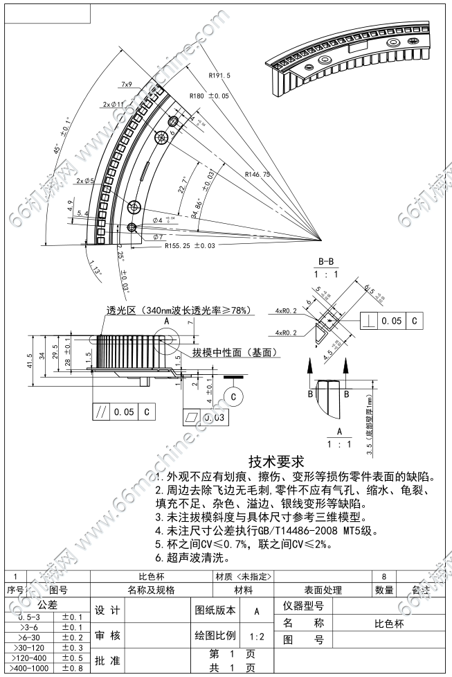比色杯也叫样品池,吸收器或比色皿,用来盛溶液,各个杯子壁厚度等规格应尽可能完全相等,否则将产生测定误差。玻璃比色杯只适用于可见光区,在紫外区测定时要用石英比色杯。不能用手指拿比色杯的光学面,用后要及时洗涤,可用温水或稀盐酸,乙醇以至铬酸洗液(浓酸中浸泡不要超过15分钟),表面只能用柔软的绒布或拭镜头纸擦净。 比色杯按照材质大致分为石英杯、玻璃杯以及塑料杯。根据不同的测量体积,有比色杯和毛细比色杯等。一般测试核酸和紫外定量蛋白,均采用石英杯或者玻璃杯,但是不适合比色法测定。因为反应中的染料(如考马斯亮兰)能让石英和玻璃着色,所以应采用一次性的塑料杯。而塑料杯一般不适合用于在紫外范围内测试样品。 由于测试的样品量不同,所以一般分光光度计厂家提供不同容积的比色杯以满足用户不同的需求。目前市场已经存在一种既可用于核酸、紫外蛋白质定量,亦可用于蛋白比色法测定的塑料杯,样品用量仅需50μl,比色杯单个无菌包装,可以回收样品。