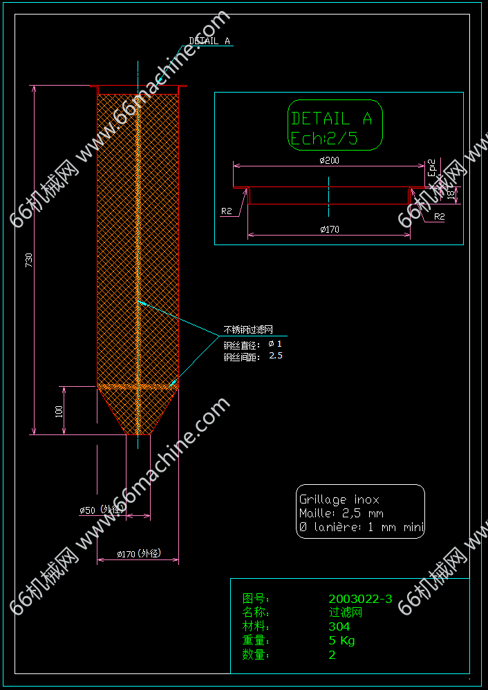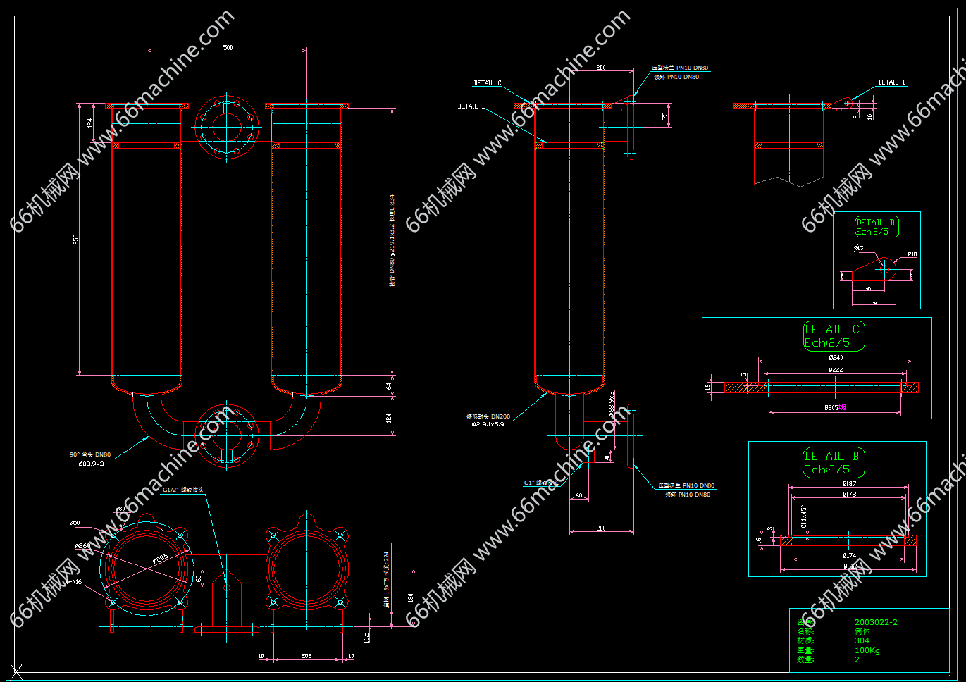 本图纸为双联过滤器,也称双联切换过滤器,是由两台不锈钢过滤器并联而成,具有结构新颖合理、密封性好、流通能力强、操作简便等诸多优点,应用范围广泛、适应性强的多用途过滤设备。