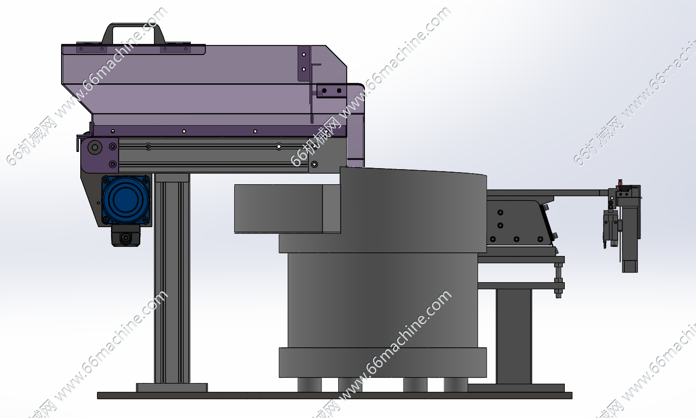 本机构是一种利用电磁振动与机械定向结构,将杂乱无序的散装工件自动整理成统一姿态、稳定节拍、连续输出的自动化供料装置,是解决散装小零件从“无序”到“有序”的自动化转换难题,是自动化装配、包装、检测生产线中最经典的定向排序与定量供给设备。