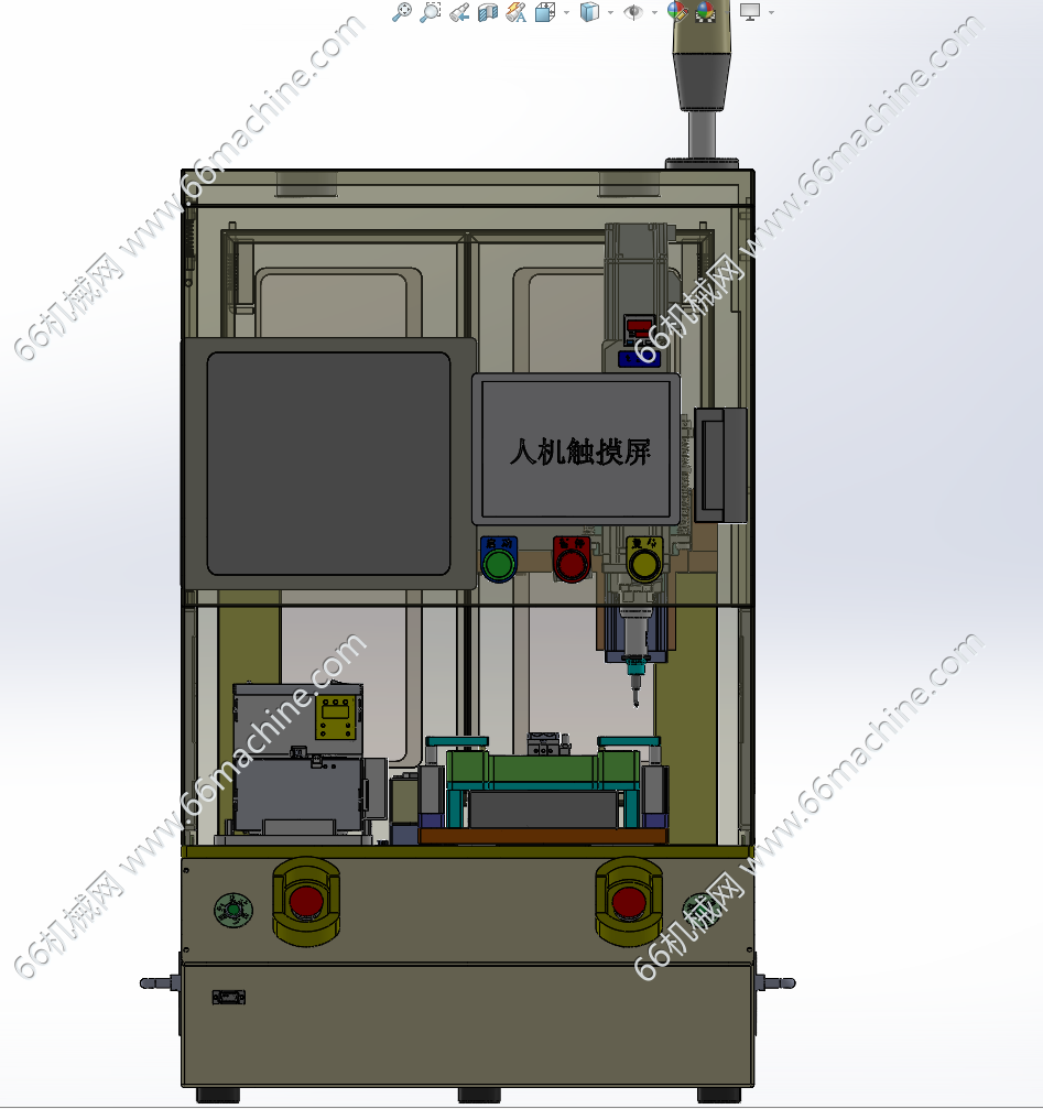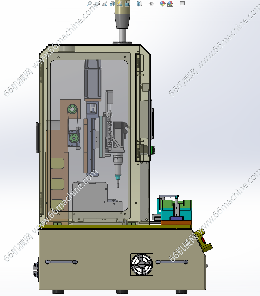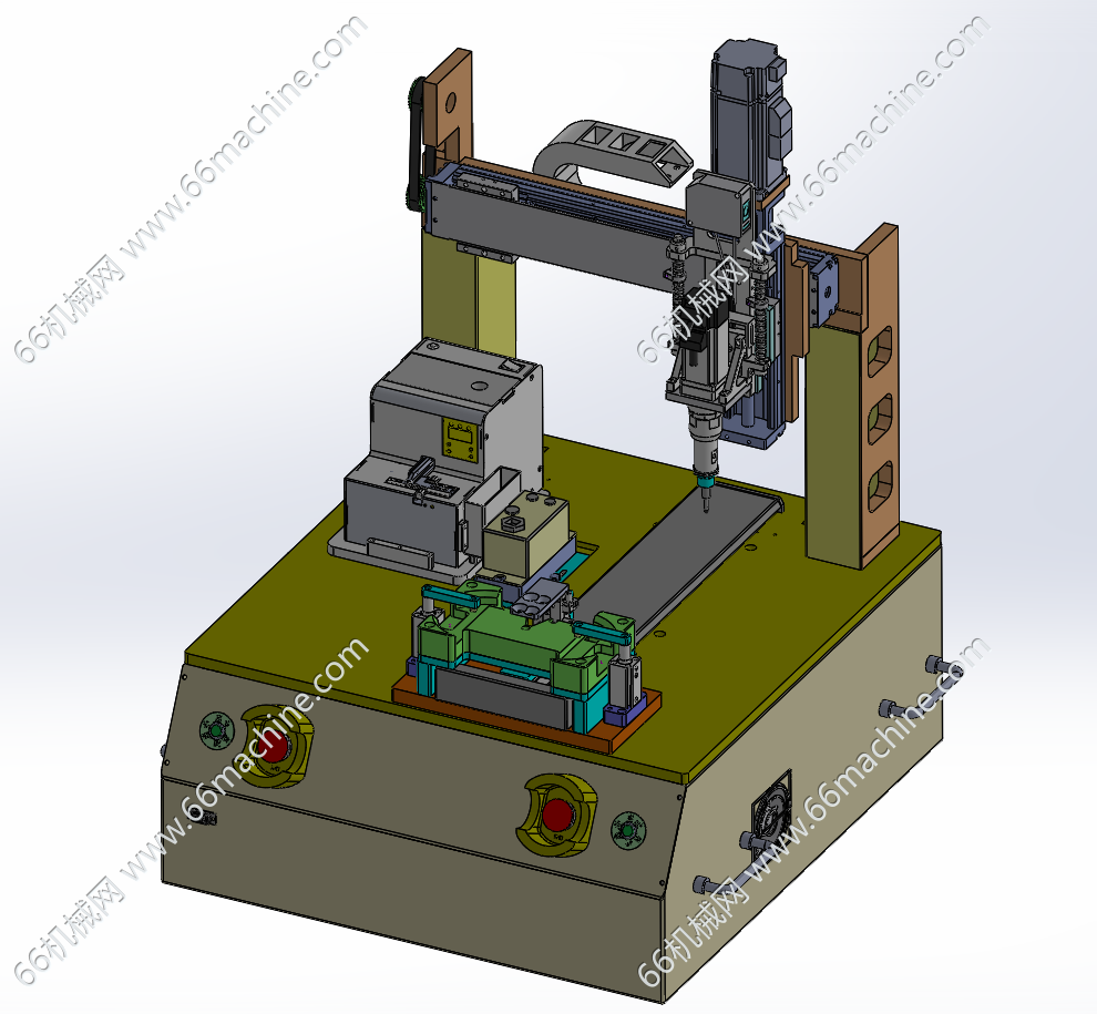 本模型为桌面式自动锁螺丝机,该设备能够锁附多个螺丝,通过载具工装进行固定产品,模组去吸取螺丝,然后进行锁附,该设备结构小巧,可以通过更换载具的方式兼容不同的产品。