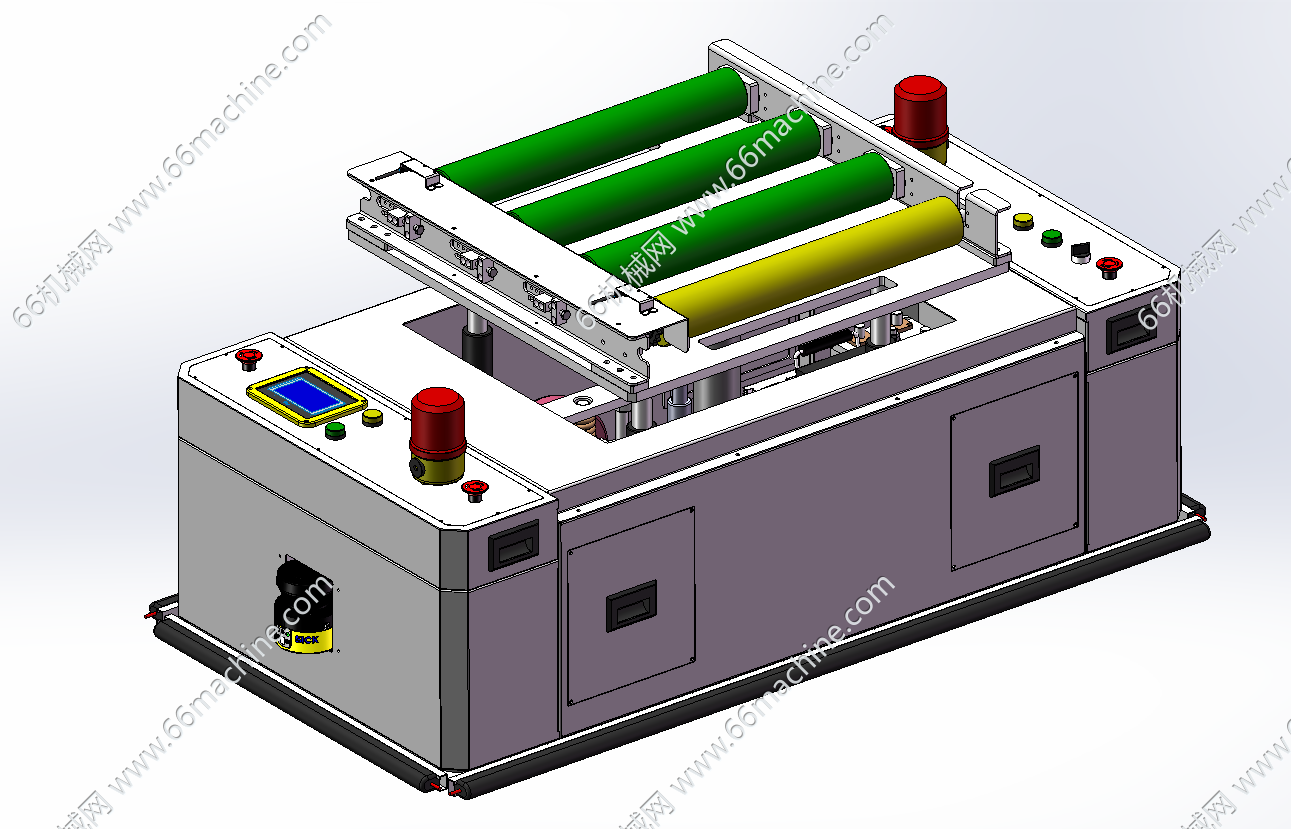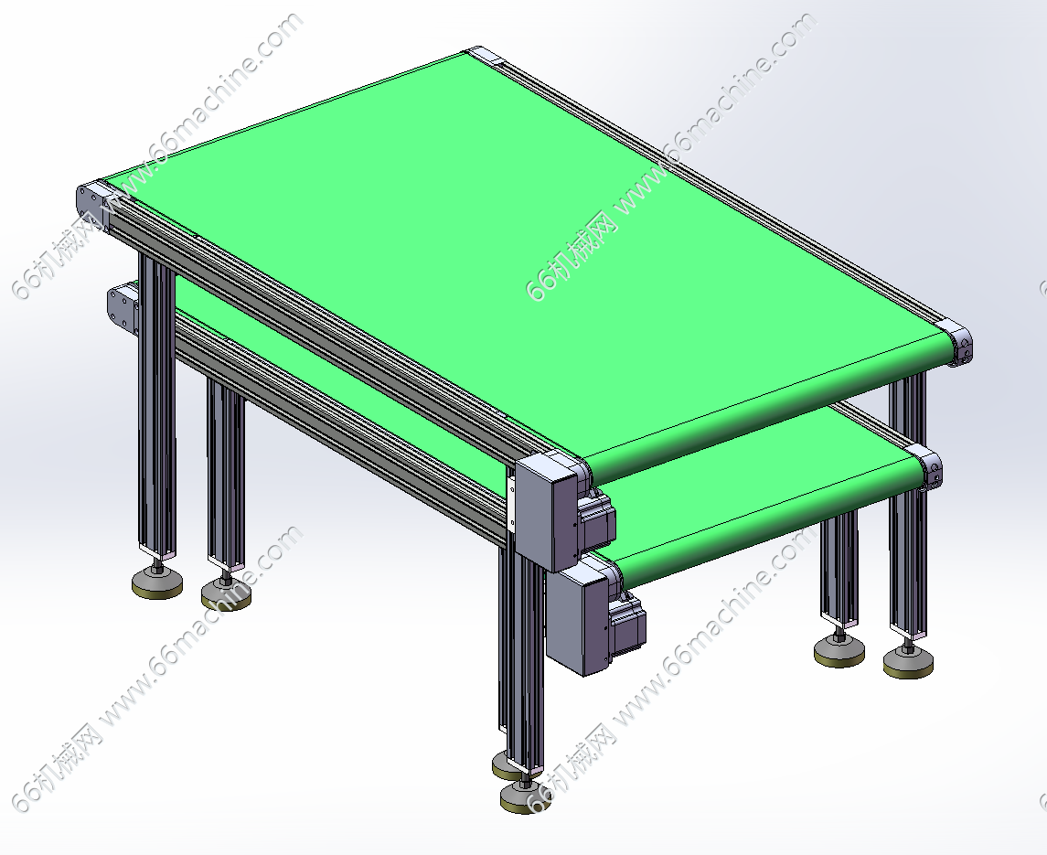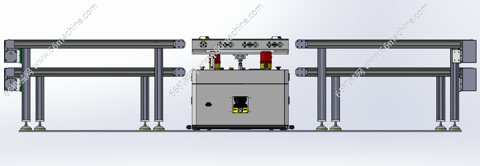 本模型为AGV顶升移栽滚筒对接双层皮带线,通过AGV把物料输送到不同的皮带机上,由于AGV升降机是升降机构,对应的有不同高度的输入输出,所以对接的皮带是上下双层的。欢迎参考!