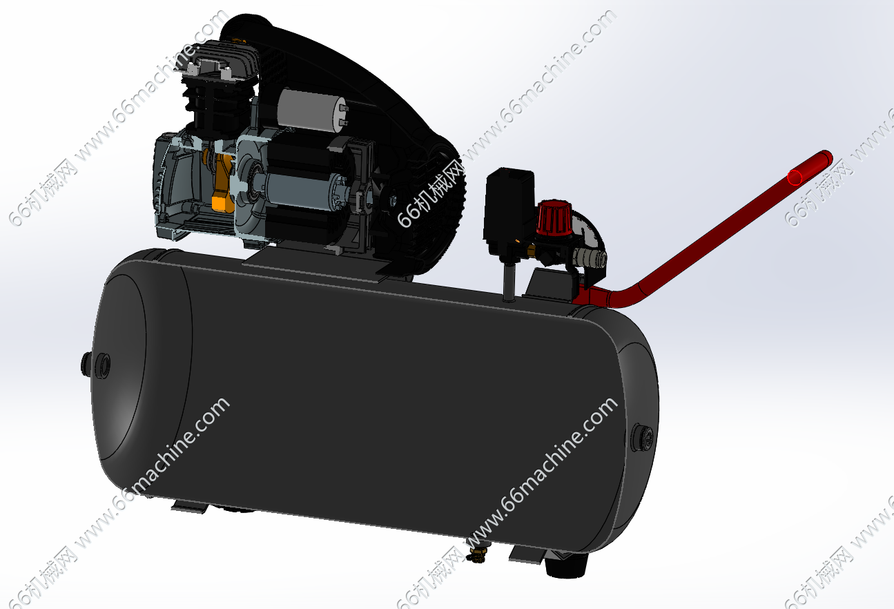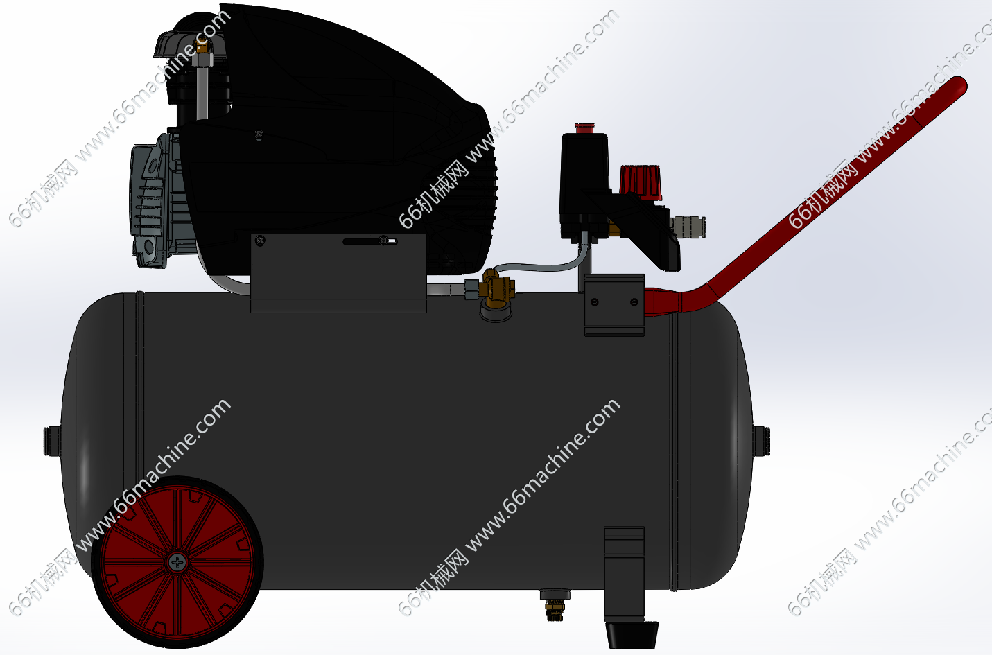 本模型为空气压缩机(空压机),是一种用于将电动机的机械能转换成气体压力能的装置,它能够提供气源动力,是气动系统的核心设备,设有滚轮及拉手,便于转移,欢迎参考!