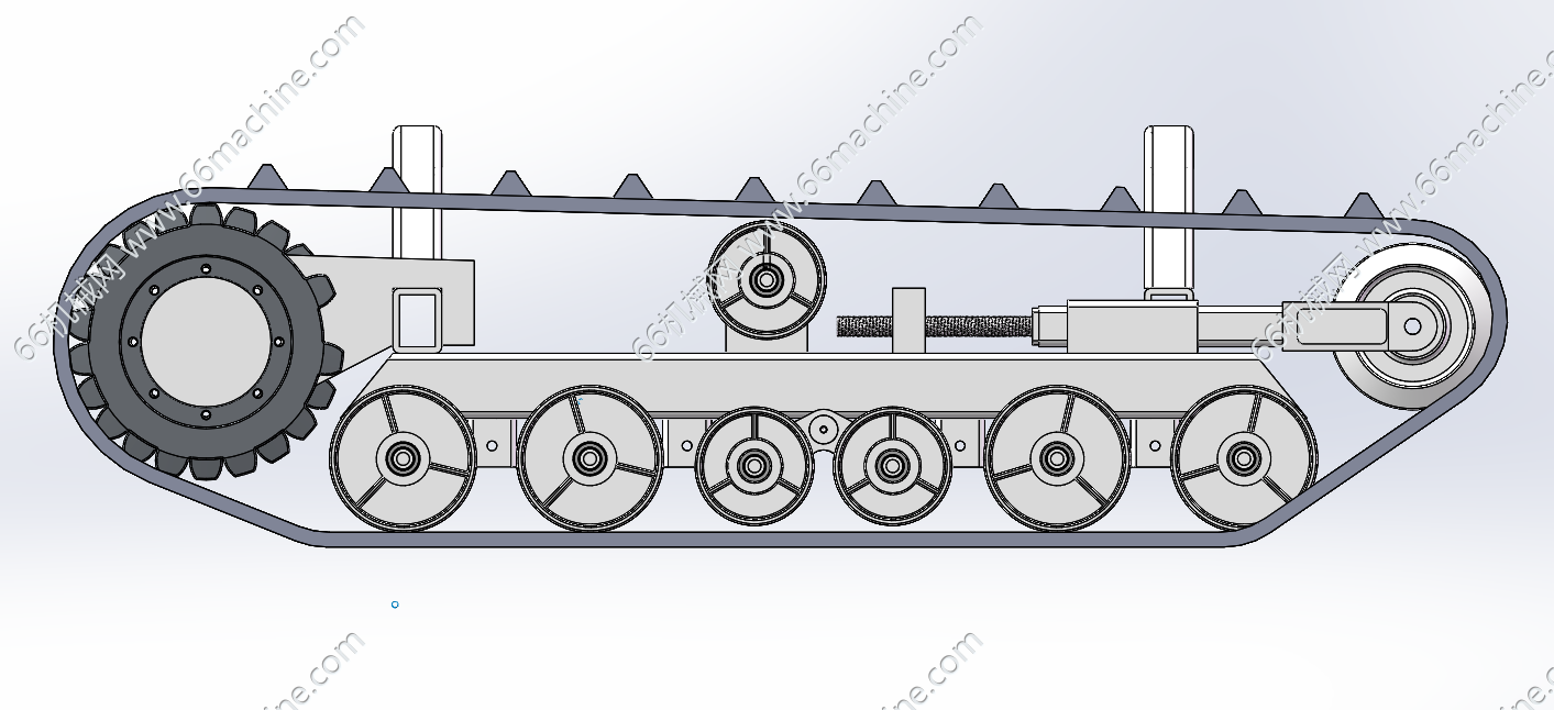 本模型为橡胶履带底盘,履带采用丁基橡胶基材,内置钢丝绳加强层,工作温度范围-25℃至+55℃ ,是专为小型农用机械和轻型工程机械设计的行走装置,具有轻量化、低噪音和良好地面适应性等特点。