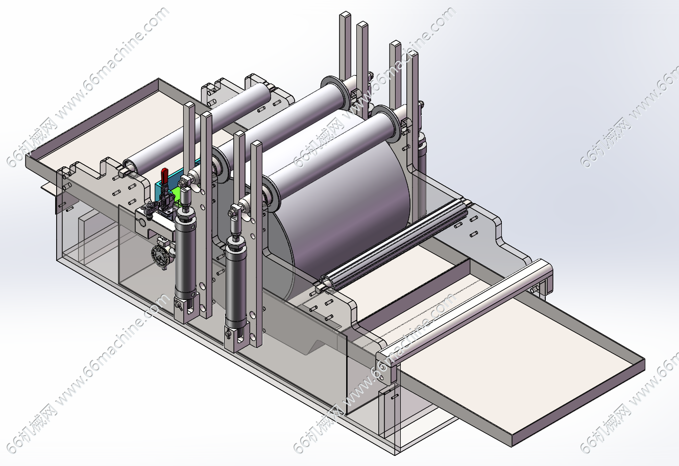 本模型为辊式纱布涂胶机,配有进纱辊、带胶辊(滚胶辊)、刮胶板组件、压胶辊、胶槽、出纱辊等组成,可用于纱布、纤维布等材料涂胶作业,欢迎下载参考!