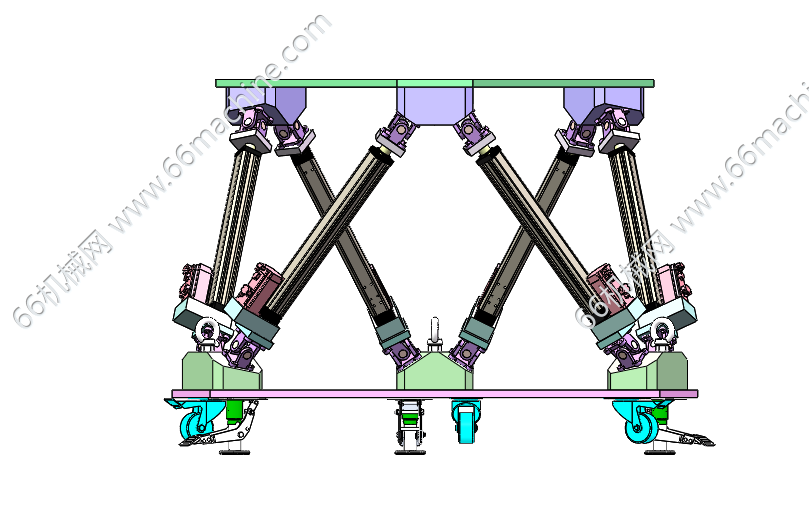 六自由度运动平台是由六支作动筒,上、下各六只万向铰链和上、下两个平台组成,下平台固定在基础上,借助六支作动筒的伸缩运动,完成上平台在空间六个自由度(X,Y,Z,α,β,γ)的运动,从而可以模拟出各种空间运动姿态。可广泛应用到各种训练模拟器如飞行模拟器、舰艇模拟器、海军直升机起降模拟平台、坦克模拟器、汽车驾驶模拟器、火车驾驶模拟器、地震模拟器以及动感电影、娱乐设备等领域,甚至可用到空间宇宙飞船的对接,空中加油机的加油对接中。