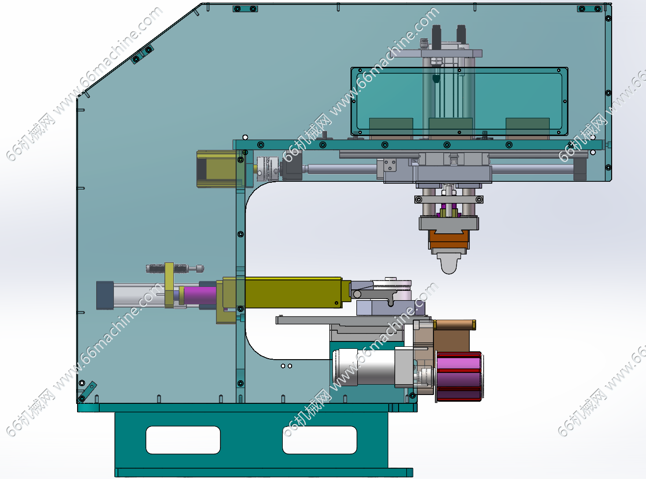 本模型为单色移印机,由胶头升降机构、伺服横移模组、油盅移动模组等组成。移印是基于 “转印” 技术,先将油墨涂布在刻有图案的印版表面,油墨填充在图案的凹陷区域,然后通过硅胶移印头将油墨从印版转印到移印头表面,最后移印头将油墨转印到目标物体表面,完成图案或文字的印刷。