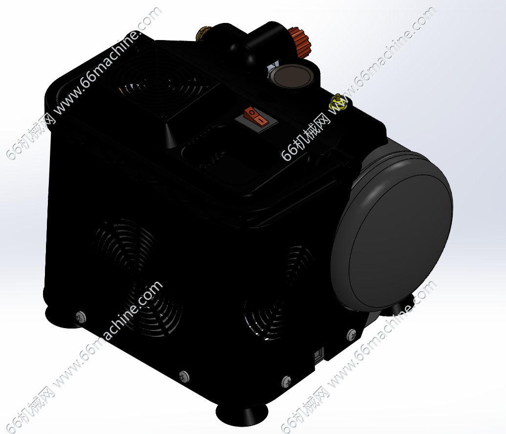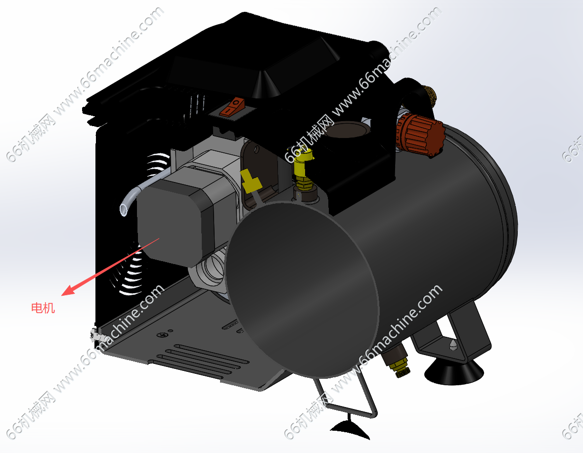 本模型为小型空气压缩机(空压机),是一种用于将原动机(通常是电动机或柴油机)的机械能转换成气体压力能的装置,它能够提供气源动力,是气动系统的核心设备。