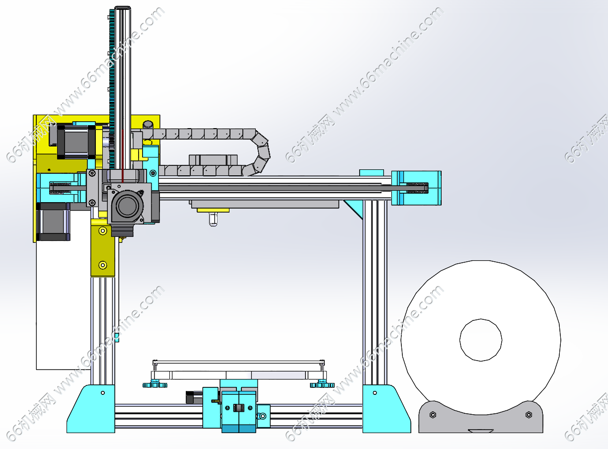 本模型为FDM(熔融沉积成型)3D打印机,由铝型材搭建的框架是整个机器的基础,搭配线性导轨和同步带,保证打印头和打印平台的精确移动。打印头集成了驱动电机、送丝机构和加热喷头。它会将丝状耗材加热熔化后,按路径挤出到平台上,欢迎参考!