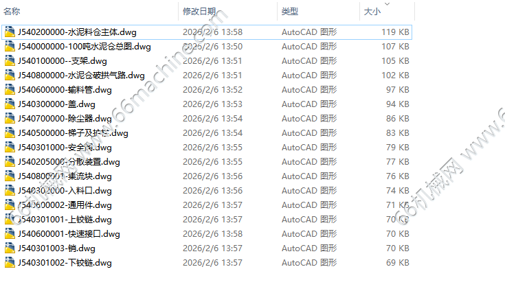 水泥仓是混凝土搅拌站的核心部件,可以用来储存水泥、粉煤灰、矿粉等粉料,水泥仓底部接螺旋输送机降粉料输送至搅拌站中。本仓容量为100吨,直径为3200mm,总高度17900mm,支腿间距2625mm,欢迎参考!