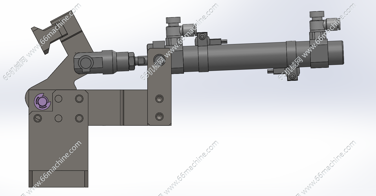 本机构是一种将气动驱动与连杆增力自锁原理相结合的自动化执行装置。其核心是通过一套铰接的连杆系统,将标准气缸的直线推力,转化为末端压头具有特定轨迹的压紧动作,并在此过程中实现力量的机械放大和压紧状态的机械自锁。