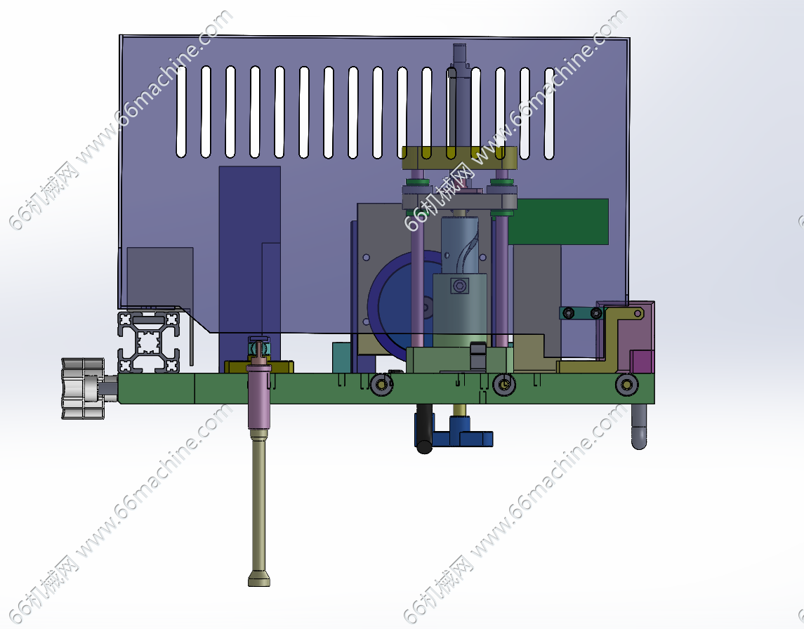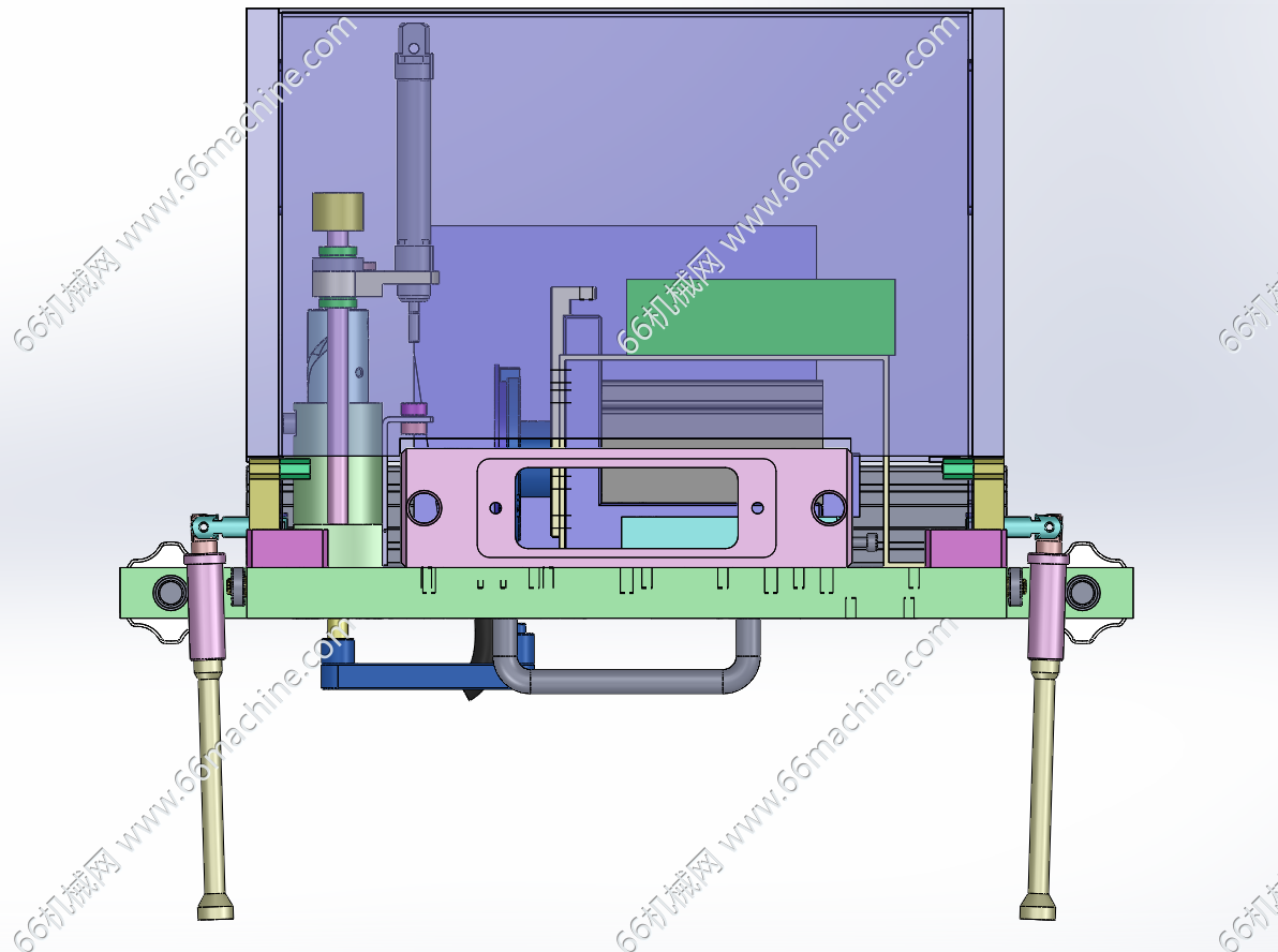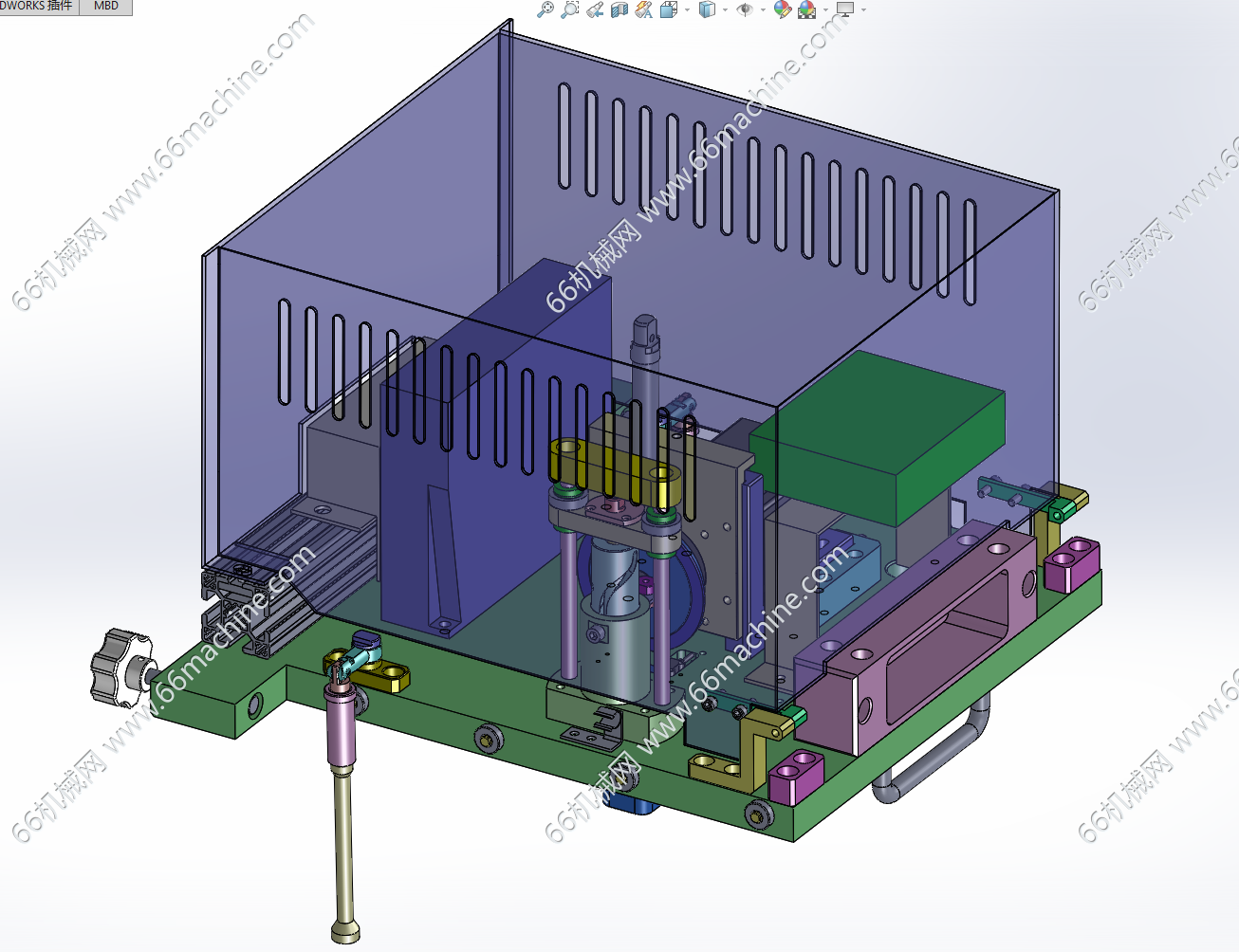 本模型为旋转滚轮压紧机构(制动机构),由钣金组成的外壳、旋转压紧机构、压臂及控制系统组成,旋转滚轮压紧机构由气缸驱动,该机构主要用于旋转轮的及时制动!