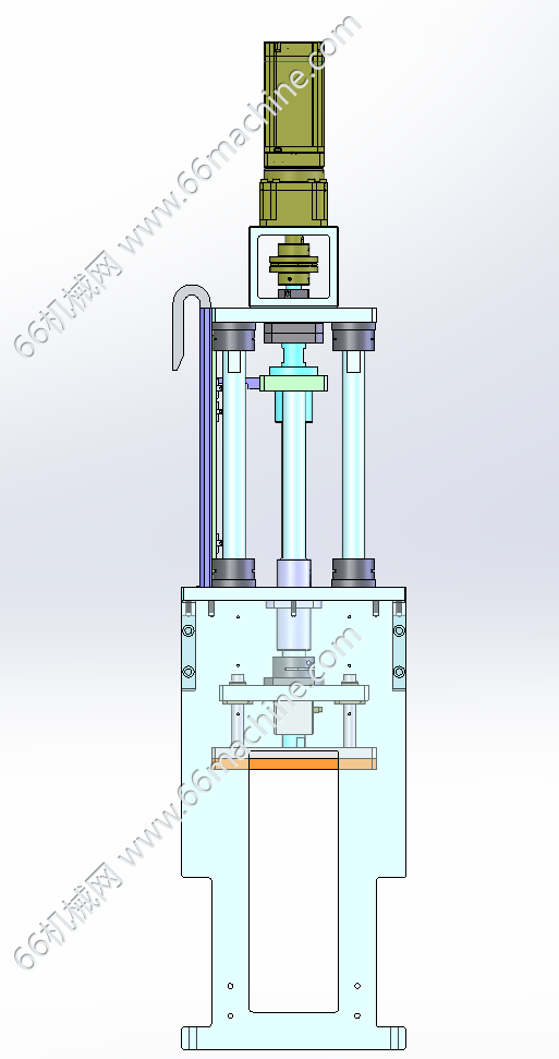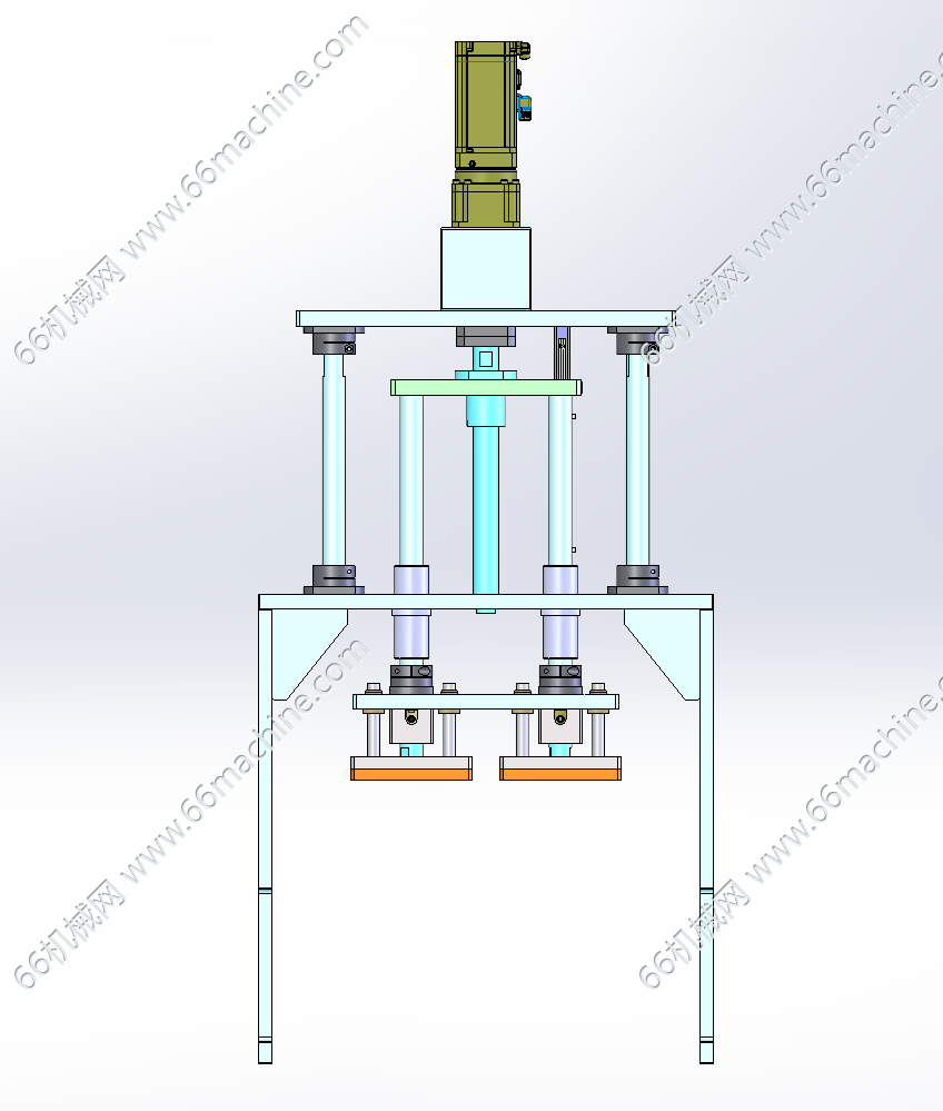 本模型为双工位伺服下压机构,采用伺服电机+丝杠模组实现下压,双导柱结构可保证双工位下压的均匀性,适用于涂胶后的压紧作业(保压),欢迎下载参考!