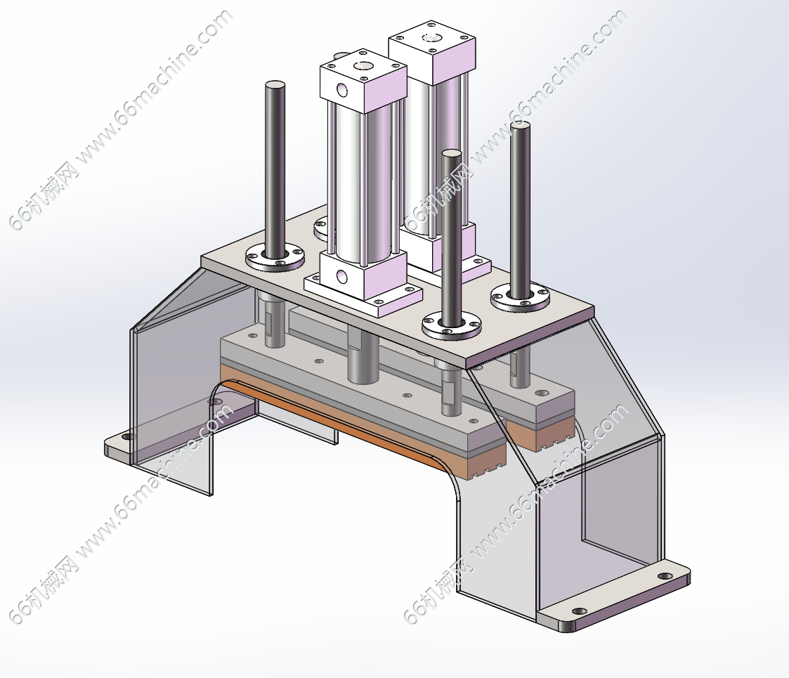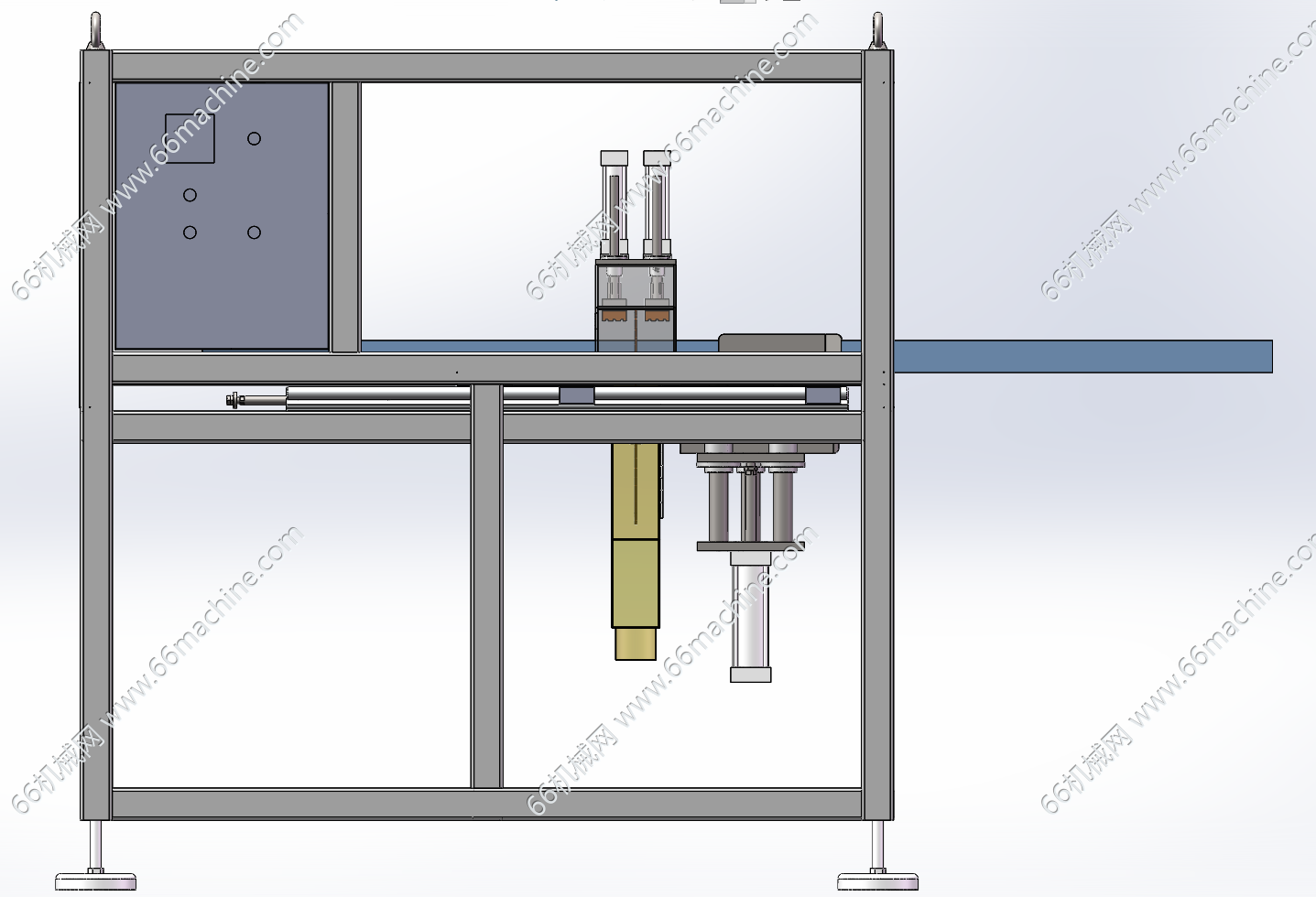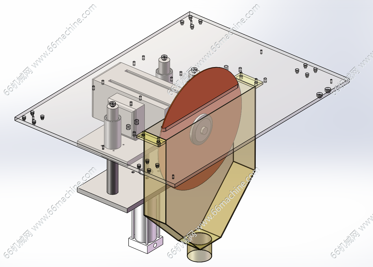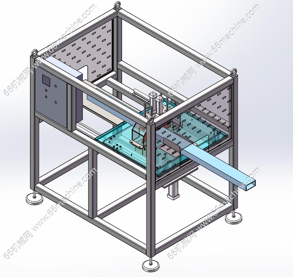 本模型为型材切割机(锯切机),主由机架、锯片气动升降模组、产品气动压紧模组、电控箱等组成,操作员将型材沿着导向挡板放入,然后气动压紧模组压紧,接着气动升降锯片进行切割作业!