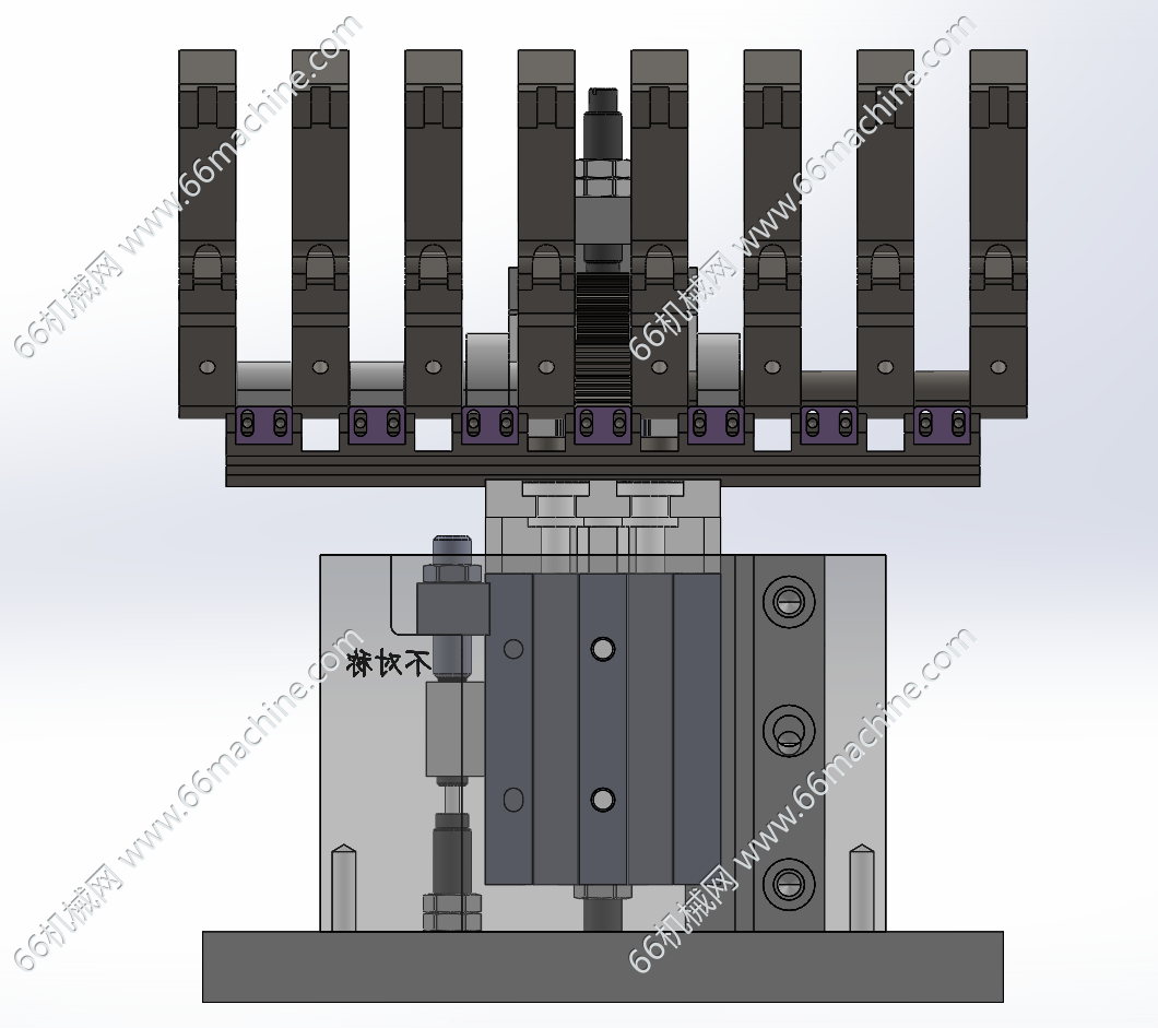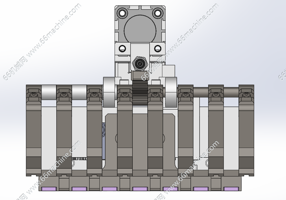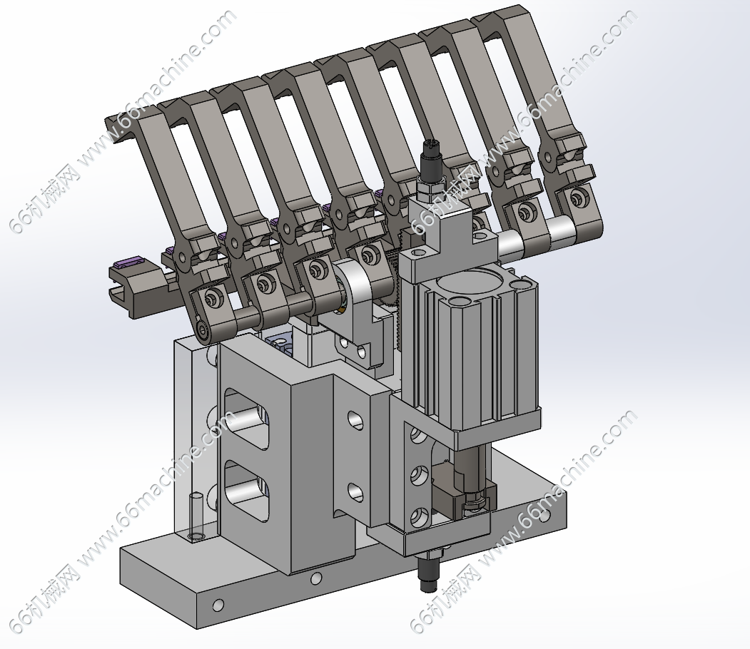 本模型为基于齿轮齿条的气动摆动机构(压紧机构),其核心功能是将来自压缩空气的直线驱动力,通过齿轮齿条的啮合传动,高效、精确地转换为有限角度的旋转压紧。
