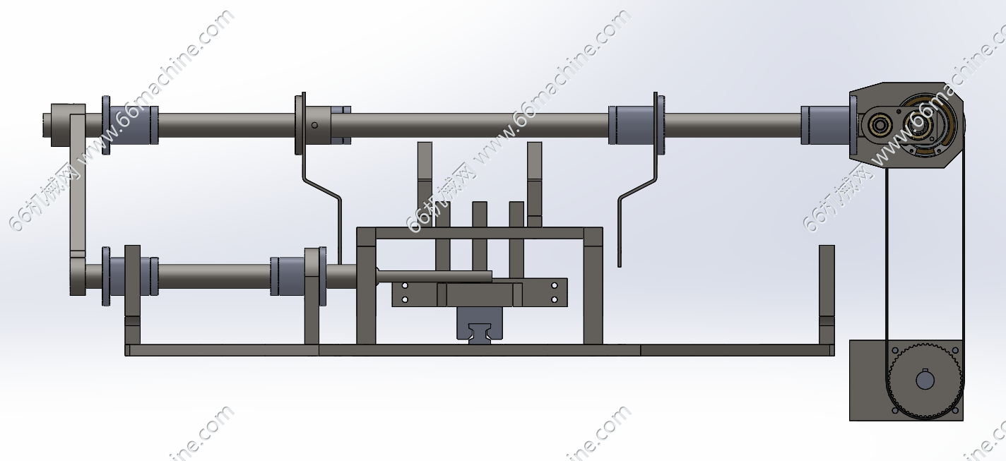 本模型为片材叠料拍打整齐机构,采用伺服电机经过带传动驱动连杆做凸轮连杆摆动运动,实现对不断流入的片材叠料拍打,实现片材整齐、平整的叠料,该机构广泛用于收集堆垛设备中,欢迎参考!