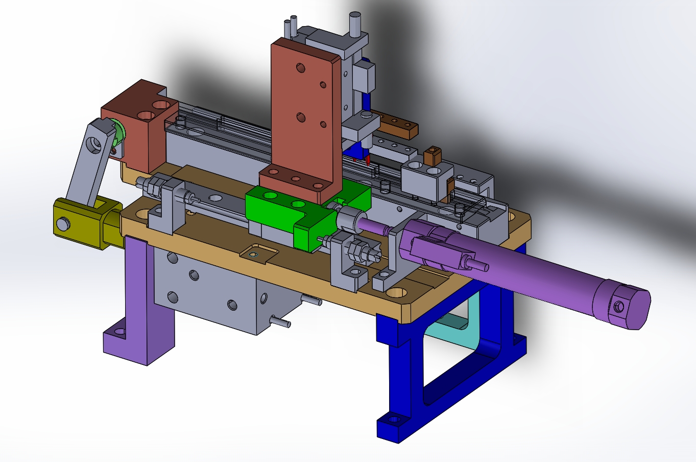 本模型为端子料带送料、旋转裁切模组,采用气缸提供动力,主要用于精密端子料带的定位、送料及裁切,具有结构成熟、稳定、可靠的特点,可供大家参考!