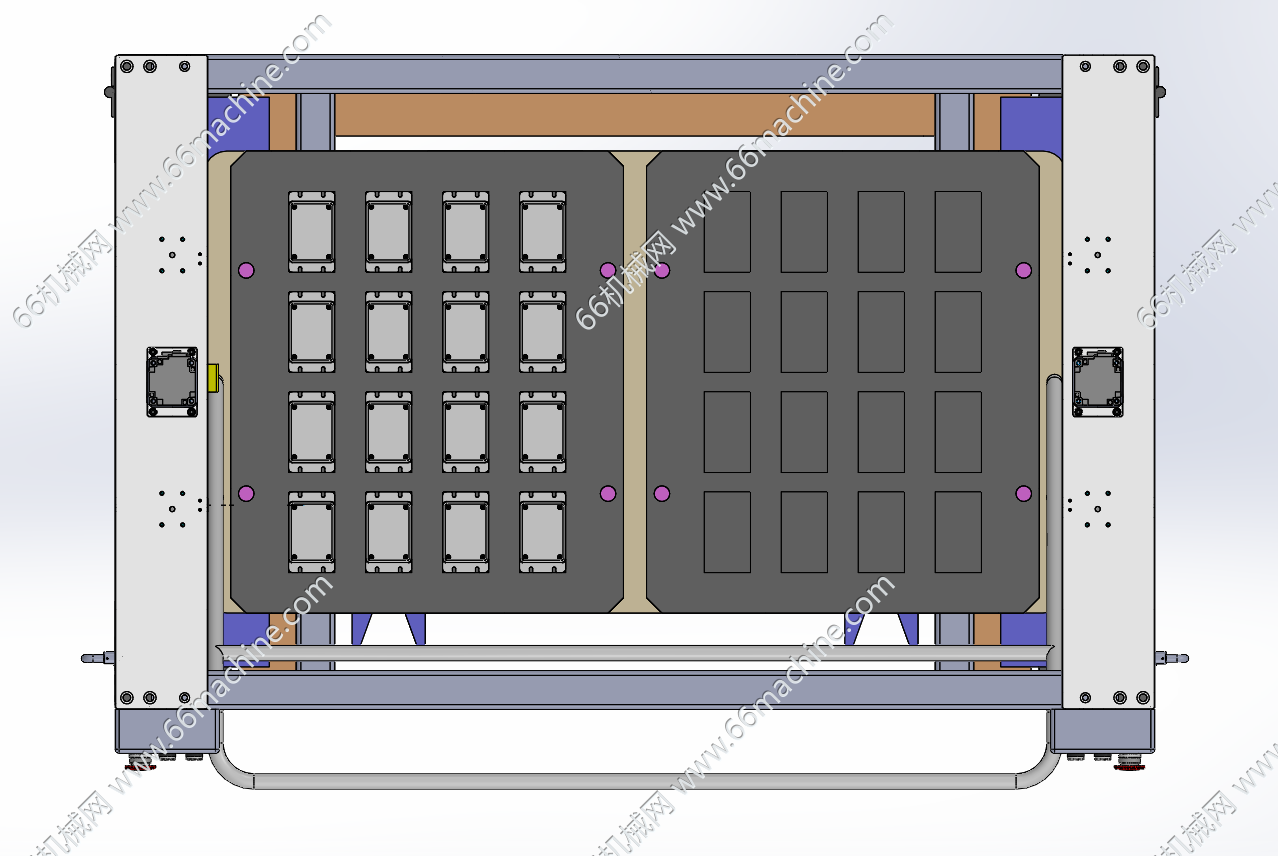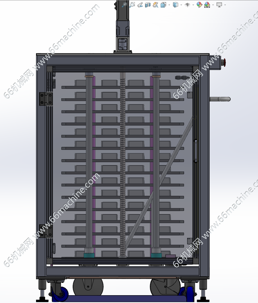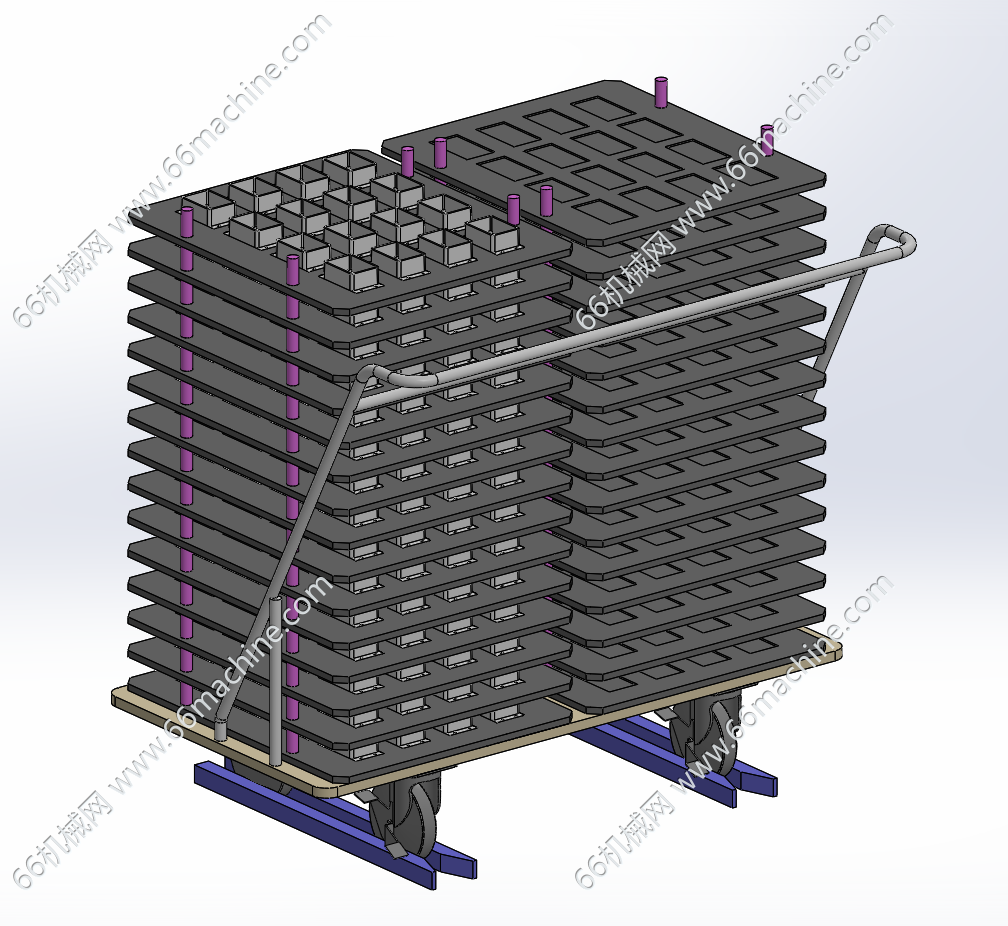 本模型为基于物料小车的Tray盘供料机构(托盘升降机构),以带万向轮的物料小车作为Tray盘的移动存储单元,通过将小车推入固定式供料主机的锁定位置,由主机的升降机构、取料机构等执行元件自动完成Tray盘的顶升取料、空盘回收等动作,从而实现Tray盘在生产线末端的连续、自动化供料与回收的系统总成。