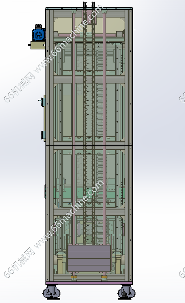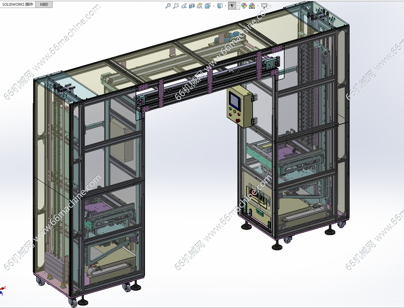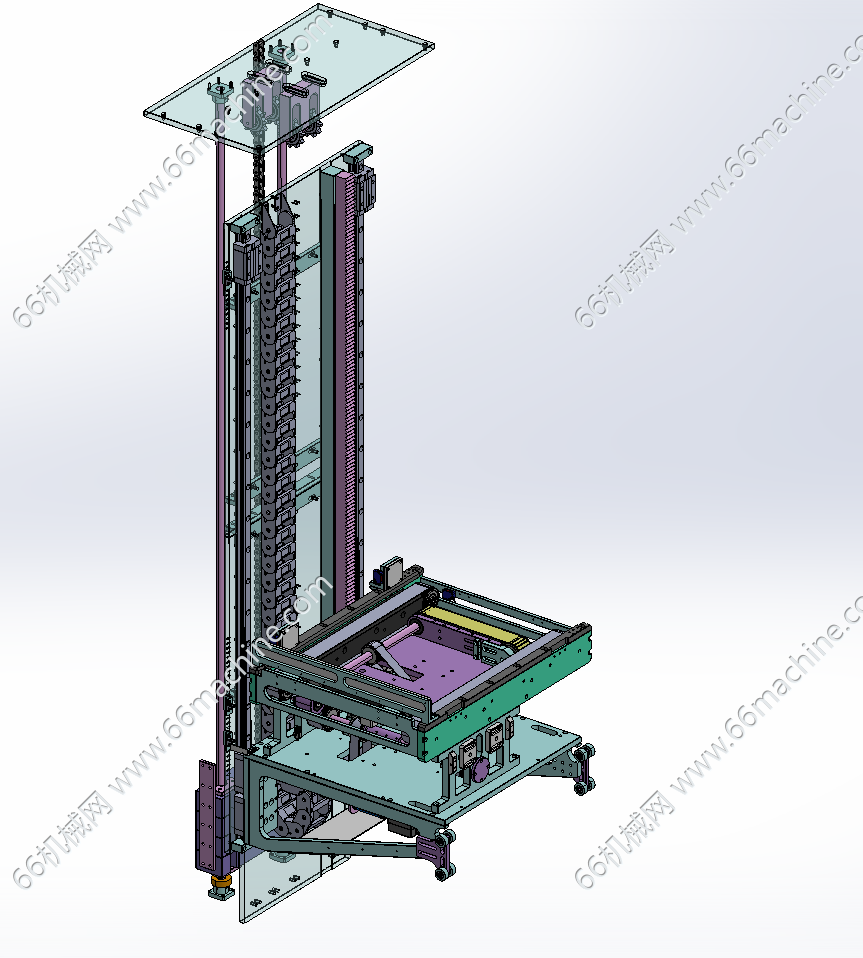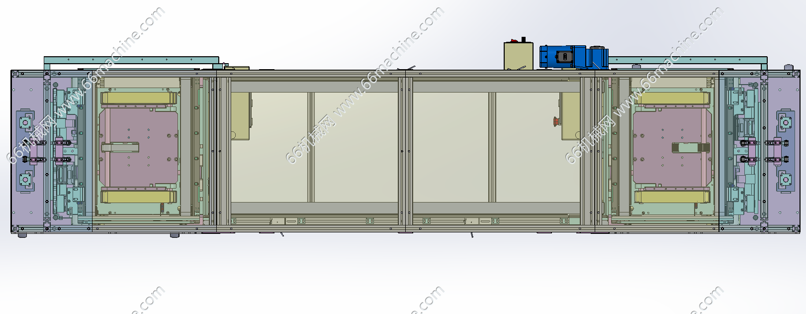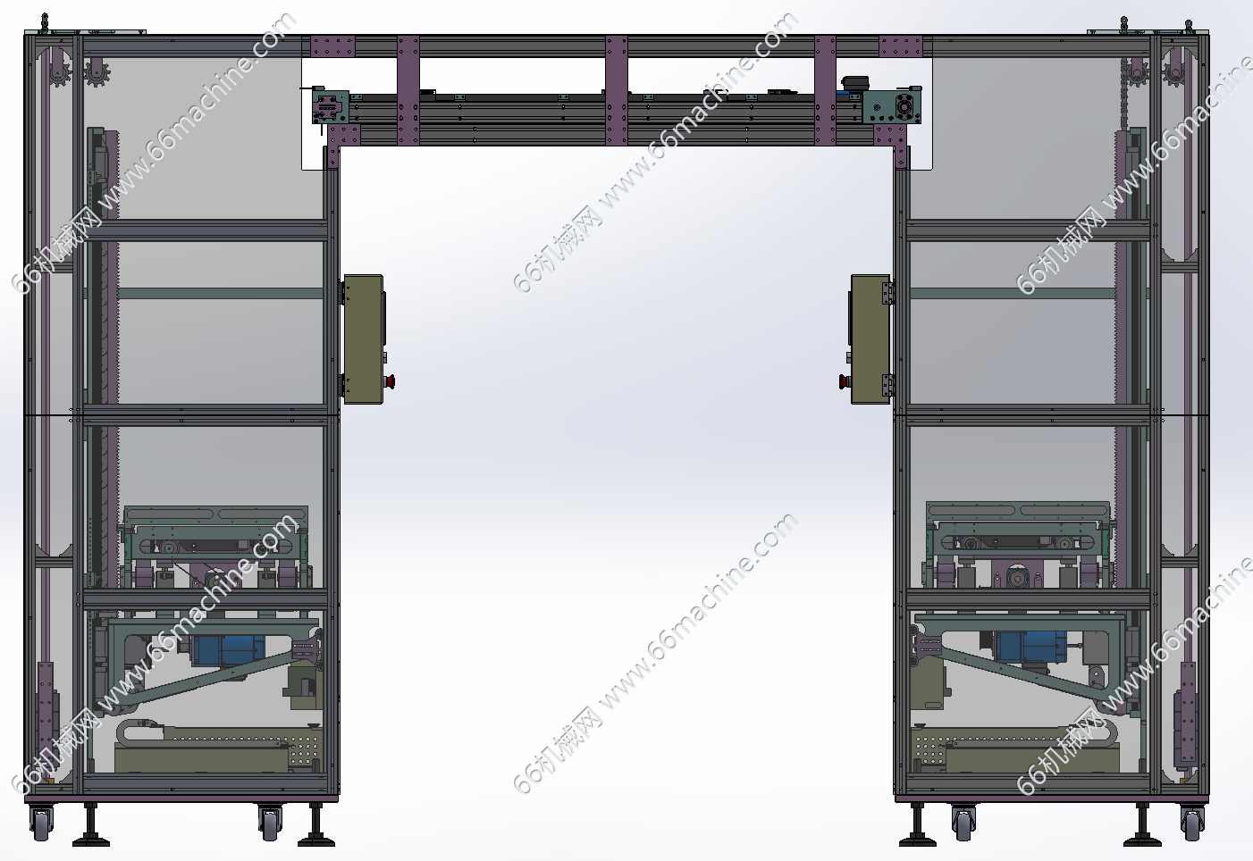 本模型为载具U型高空跨越提升移栽机(升降跨越输送机),两端采用伺服电机+齿轮齿条+双导轨实现升降,双导轨能保证升降的平稳性。高空采用水平双列皮带线,用于载具的升降及高空横移输送,实现跨越输送,欢迎参考!