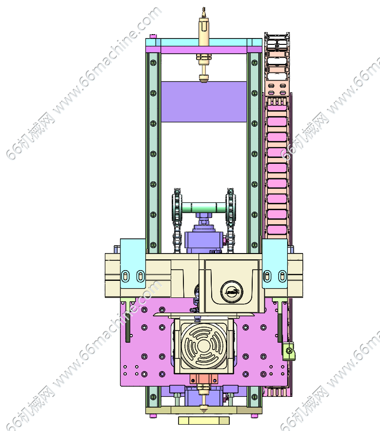 此提升机通过电磁阀控制气缸两端的进气与出气推动活塞杆上下运动,因为活塞杆与两侧的导轨连接,导轨与叉脚连接,从而叉脚最终因为电磁阀的控制实现上升与下降。