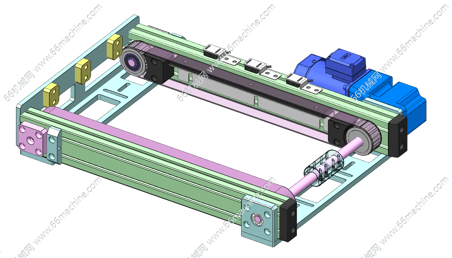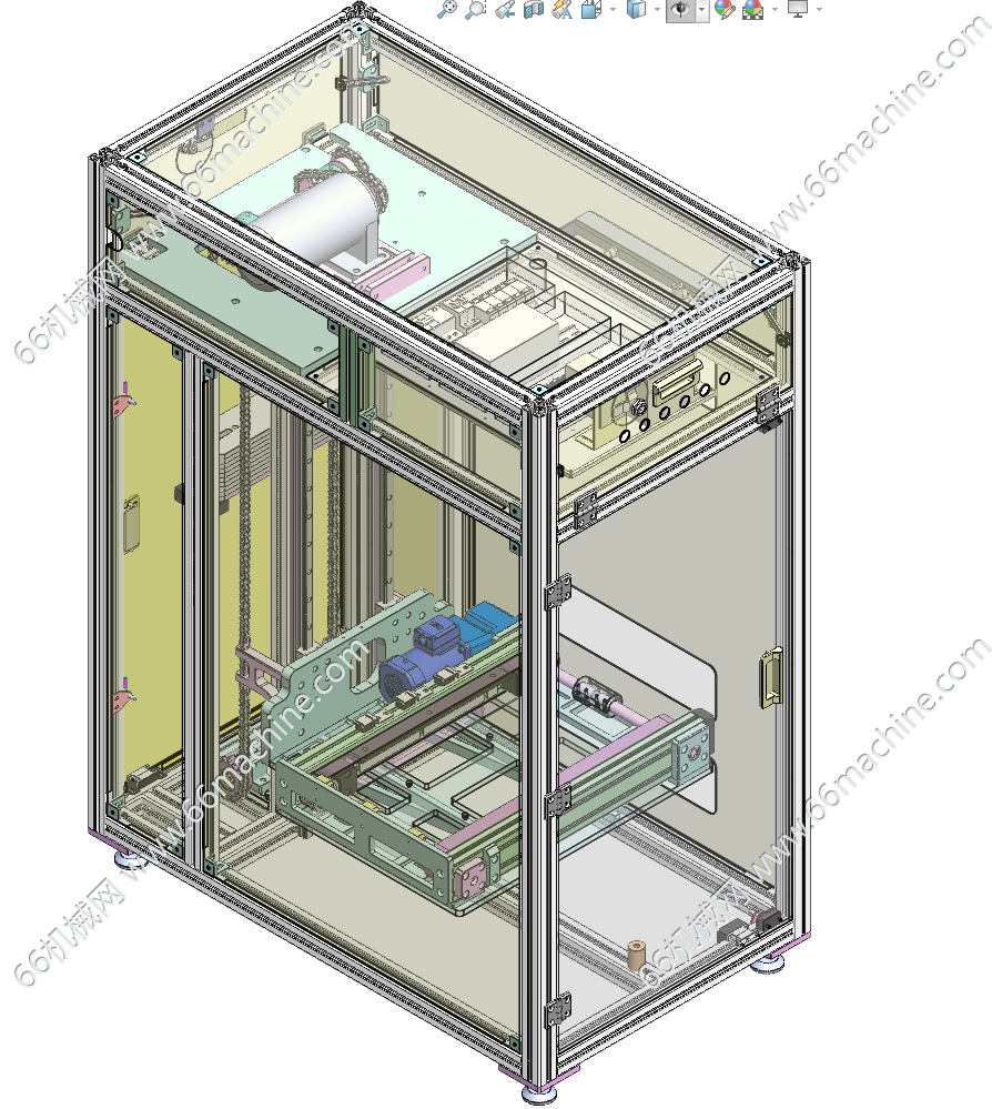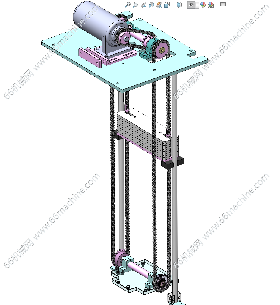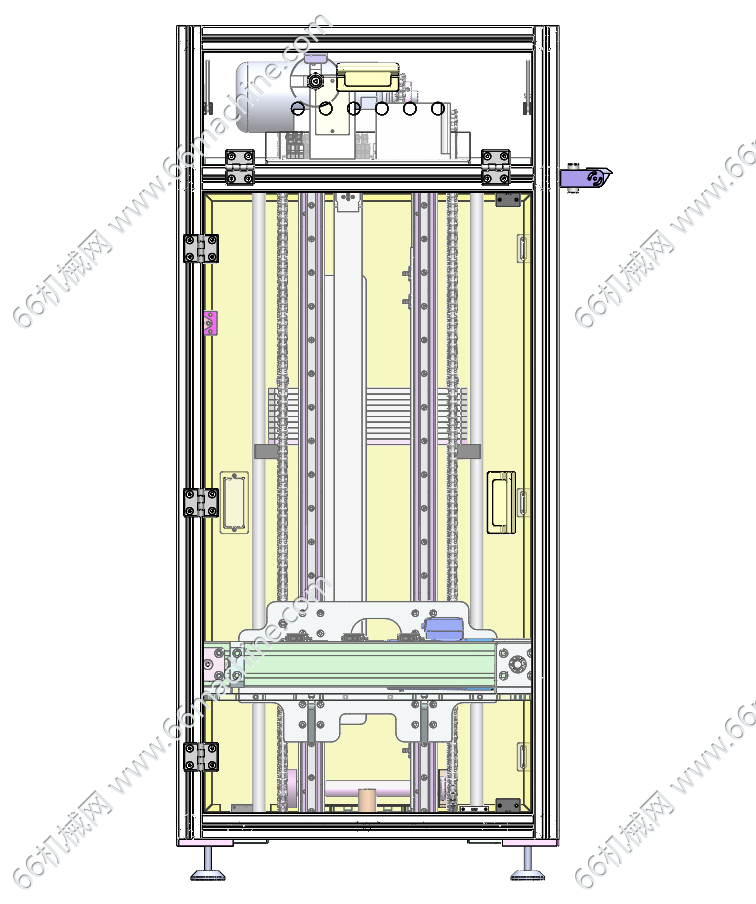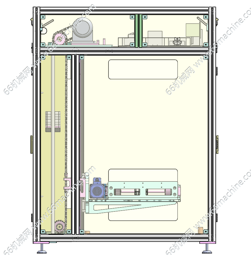 本模型为某企业皮带线链式提升机(升降机),主要由机架、导轨式升降台、链式驱动模组及双列皮带线组成,采用伺服电机驱动链条实现升降,常用于载具的升降及输送,可用于倍速链首尾端的升降,欢迎参考!