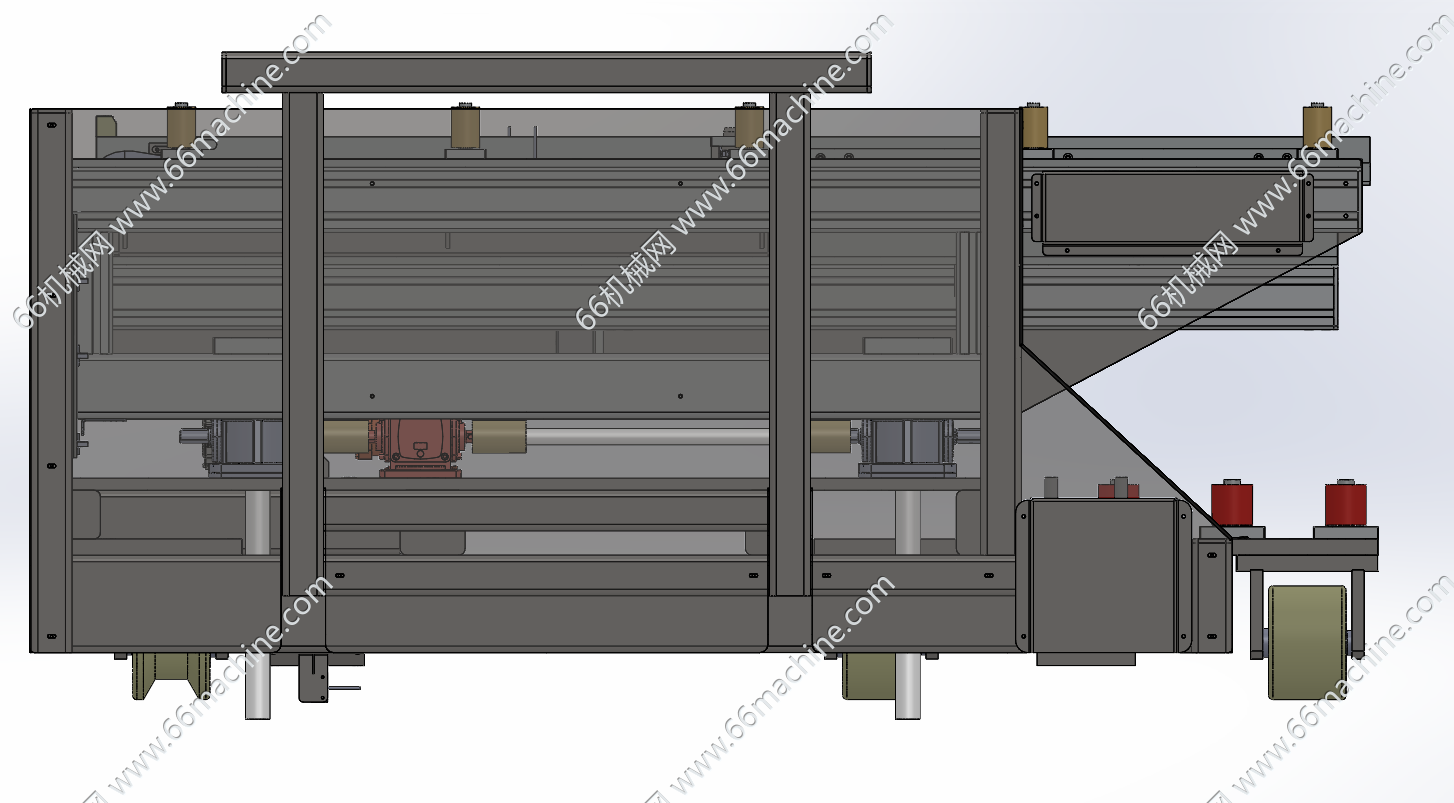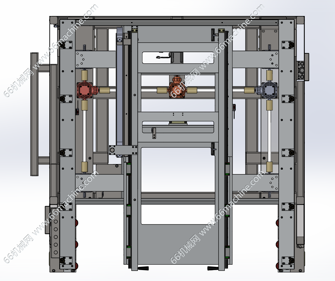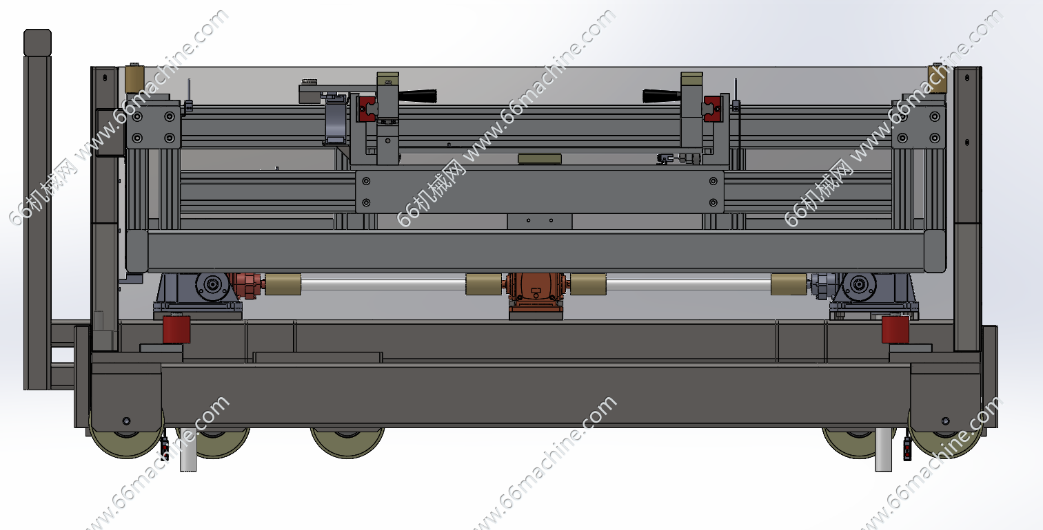 本模型为丝杠升降台车,采用伺服电机经过传动轴及转换器实现四组丝杠的同步上升/下降,适用于重型板料、大型工件的移送作业,最大载重2.5t,欢迎参考!