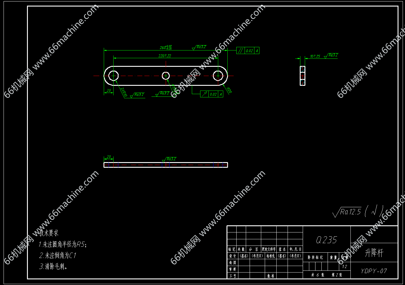 本图纸为手动剪叉式升降台,采用手动旋转螺杆实现剪叉臂的升降动作。本图纸包含总图、升降杆、连接轴等6张图纸,应用比较广泛,可作为参考设计,欢迎下载!